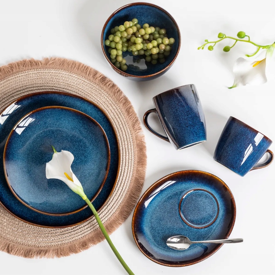 ⭐ Элегантный дизайн - глубокий темно-синий с тонкими цветовыми переходами и коричневой кромкой придает посуде неповторимый, стильный вид.