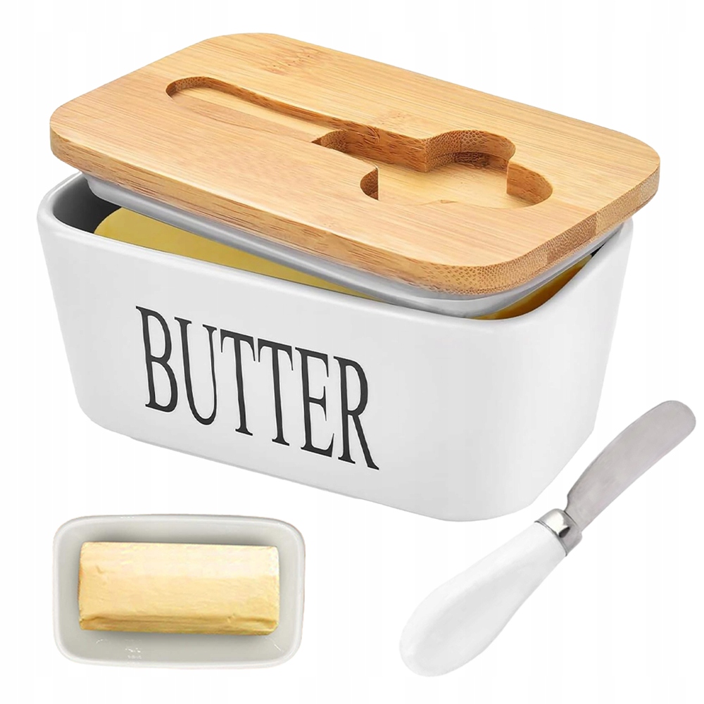 КЕРАМИЧЕСКАЯ МАСЛЕНКА КОНТЕЙНЕР ДЛЯ МАСЛА С КРЫШКОЙ + НОЖ ДЛЯ РАЗДАЧИ
