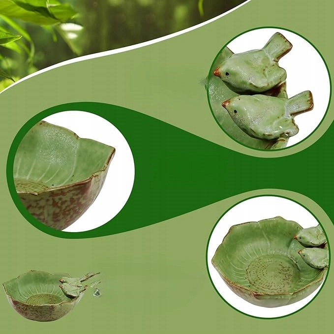 ⭐ Керамическая чаша для купания с птицами — украшение сада в стиле ретро ⭐