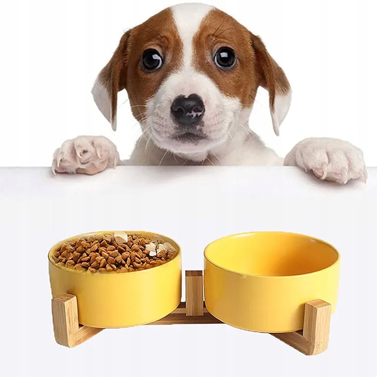 2 керамические чаши, установленные на устойчивом основании из натурального дерева, не содержащего свинца и кадмия.