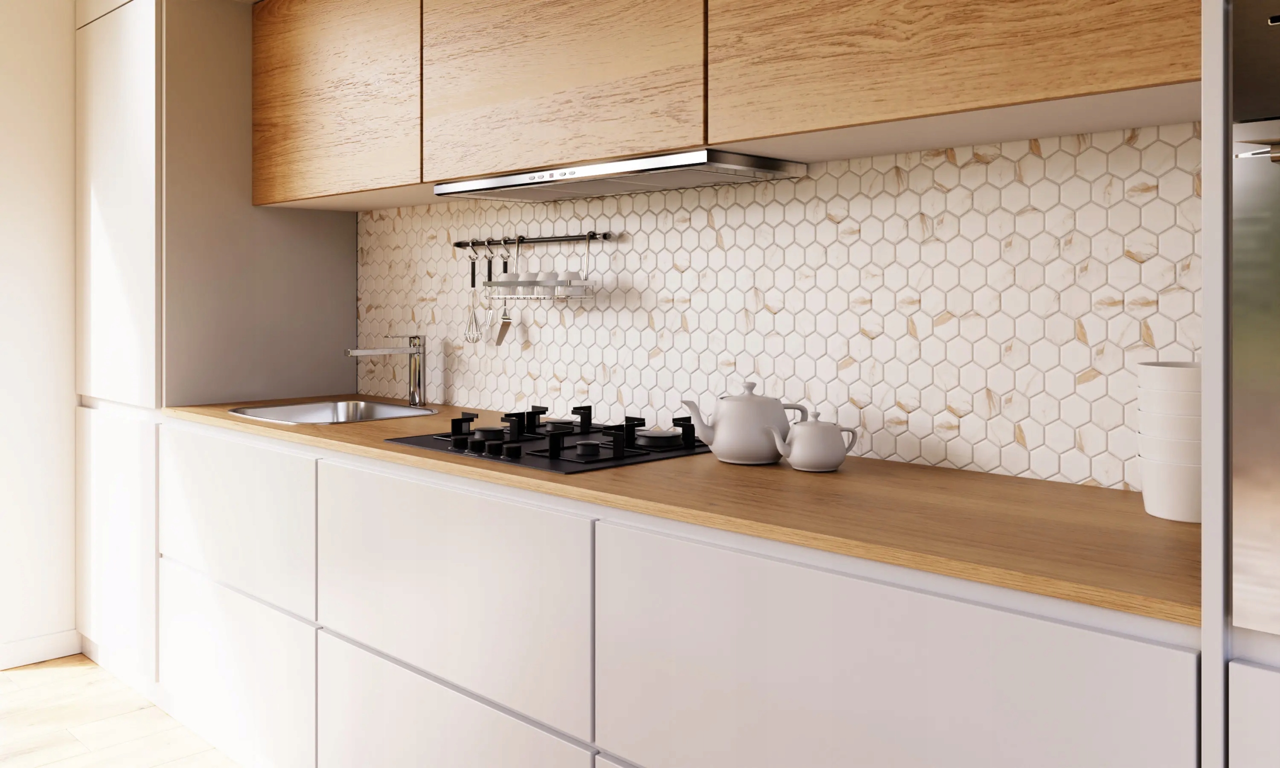 - Устойчивость к влаге - керамическая мозаика идеально подходит для ванных комнат, кухонь и других влажных комнат, благодаря естественному сопротивлению водной керамики. Устойчивый к истиранию, что делает мозаику идеальным выбором для интенсивно используемых пространств.