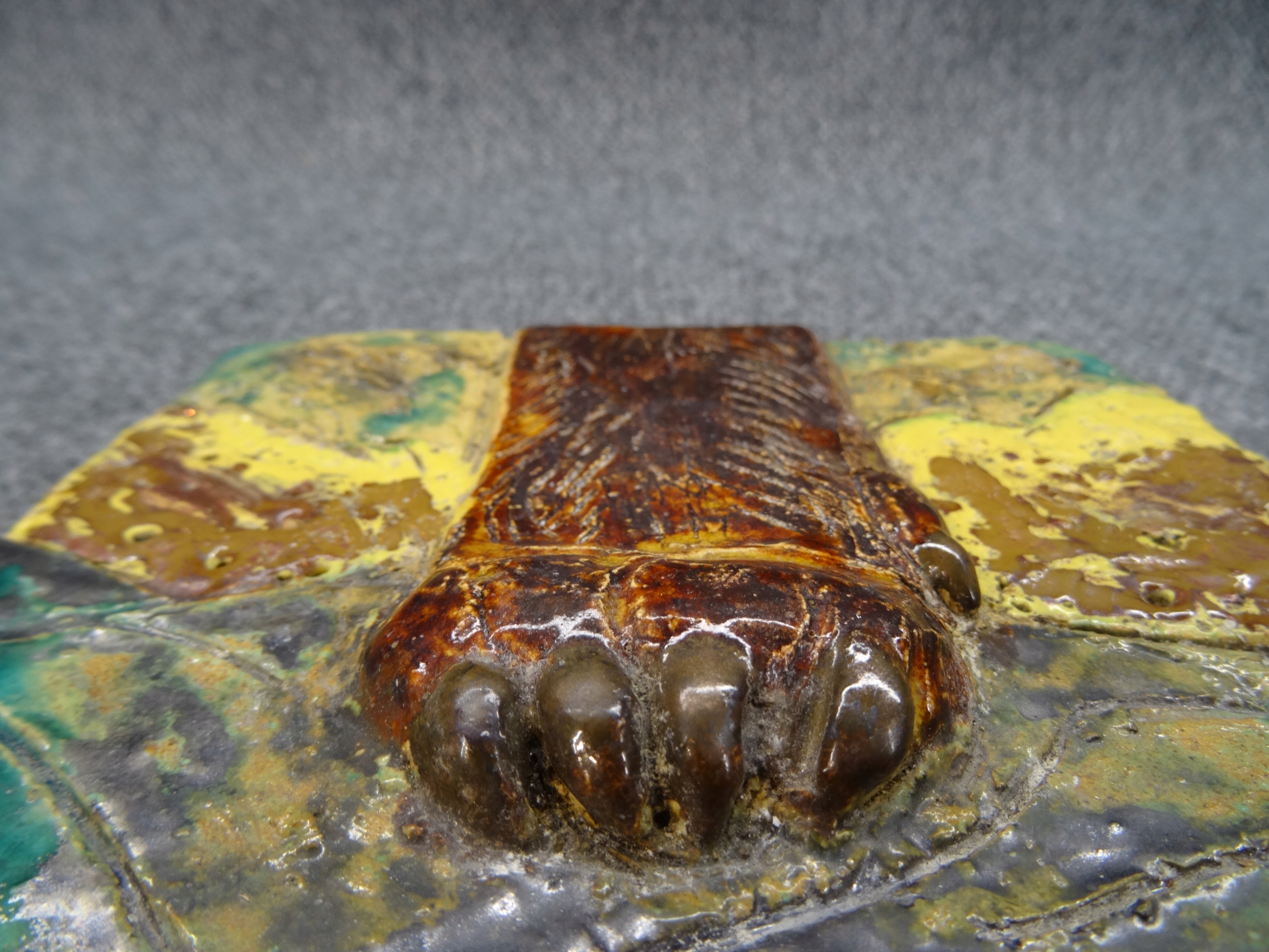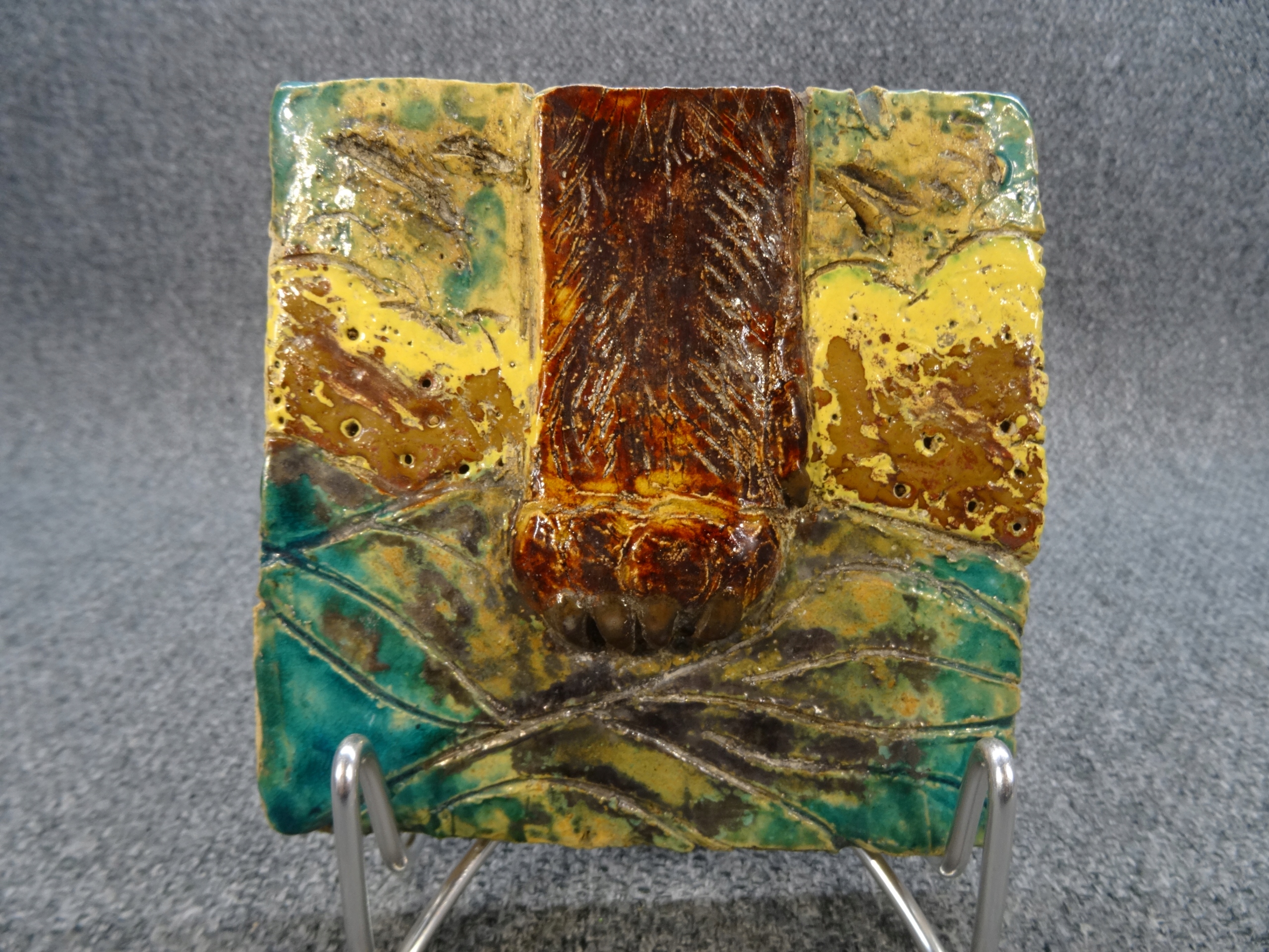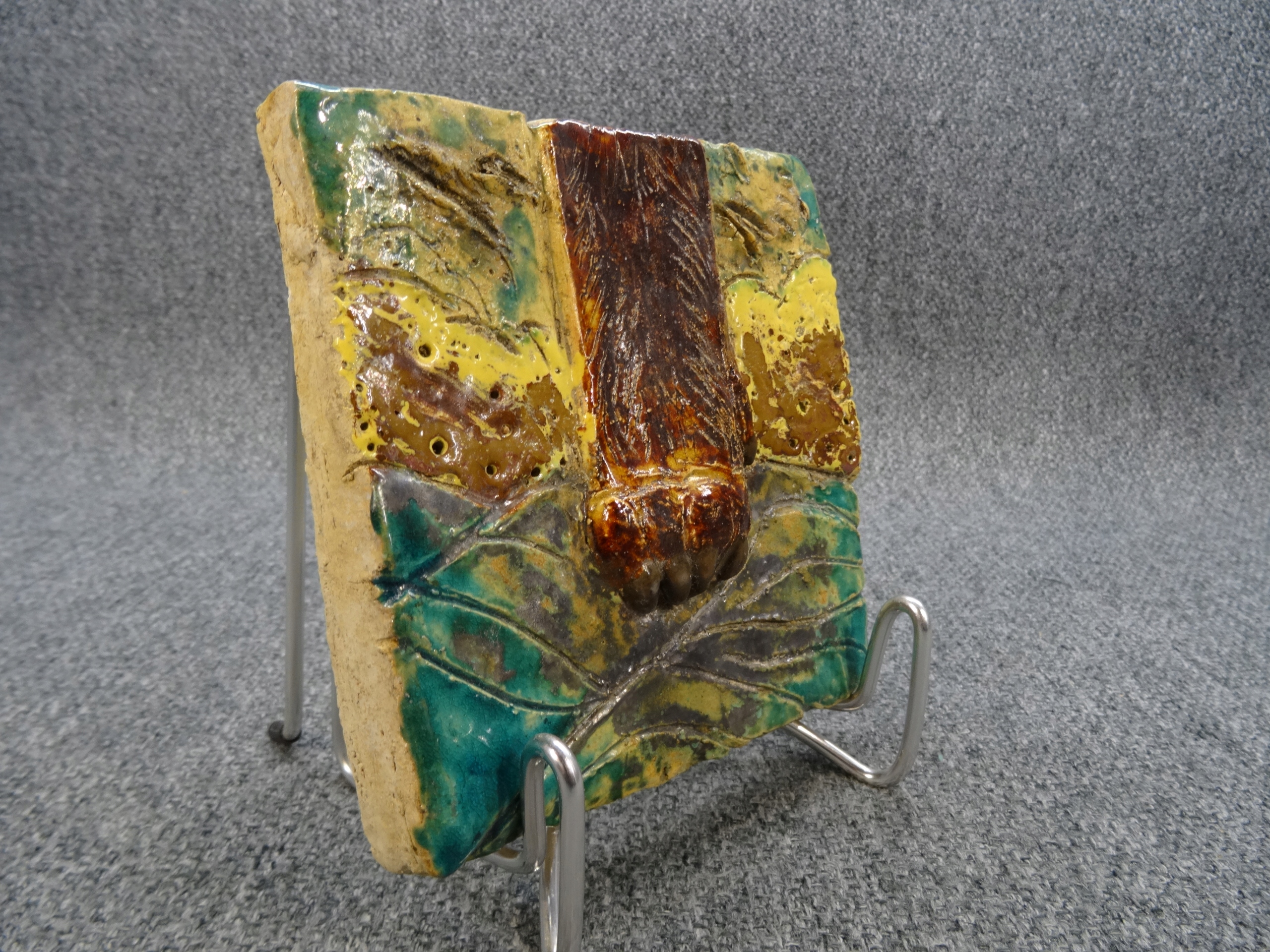 Керамическая плитка с представлением лапы животного медведя, кота? Кафель красиво окрашен.