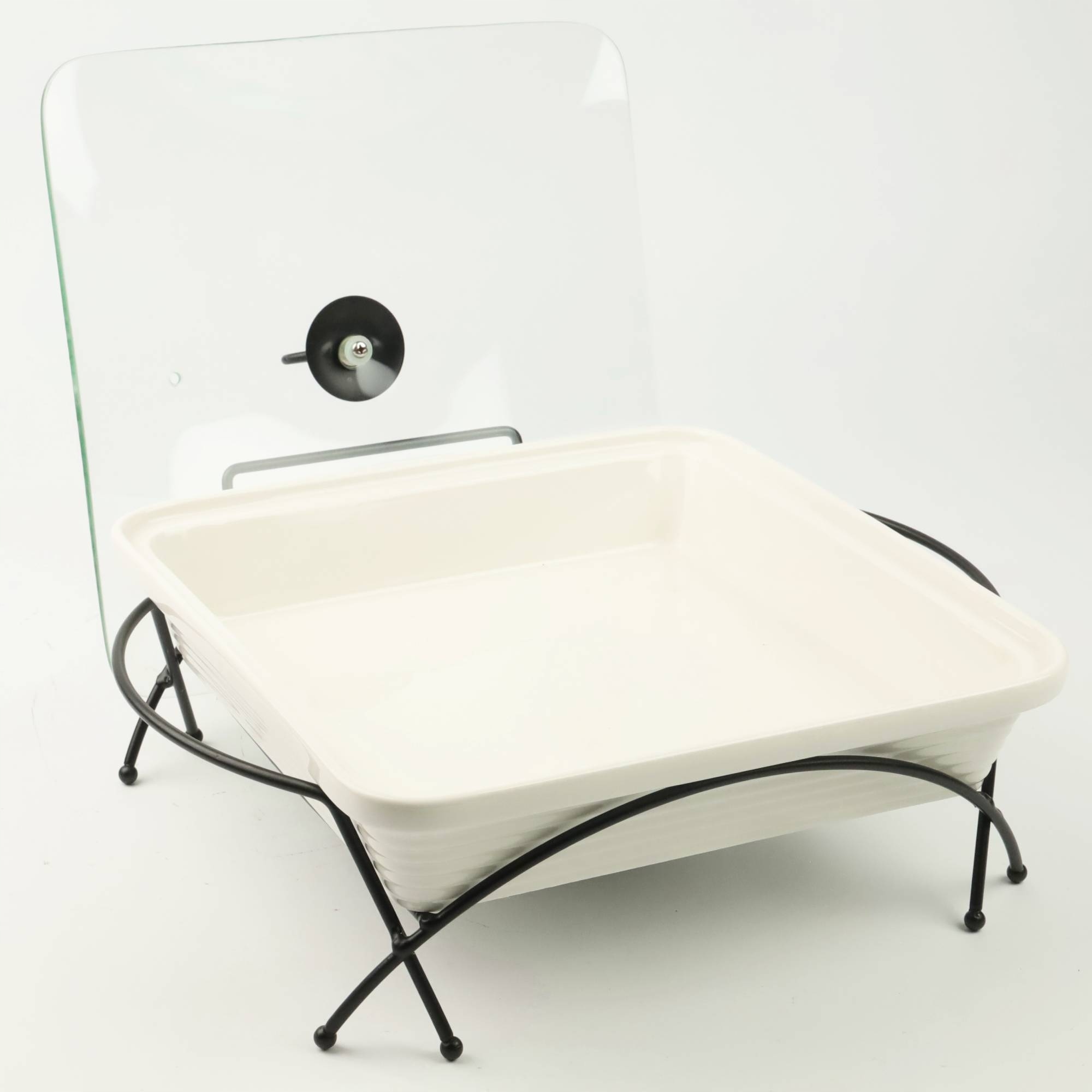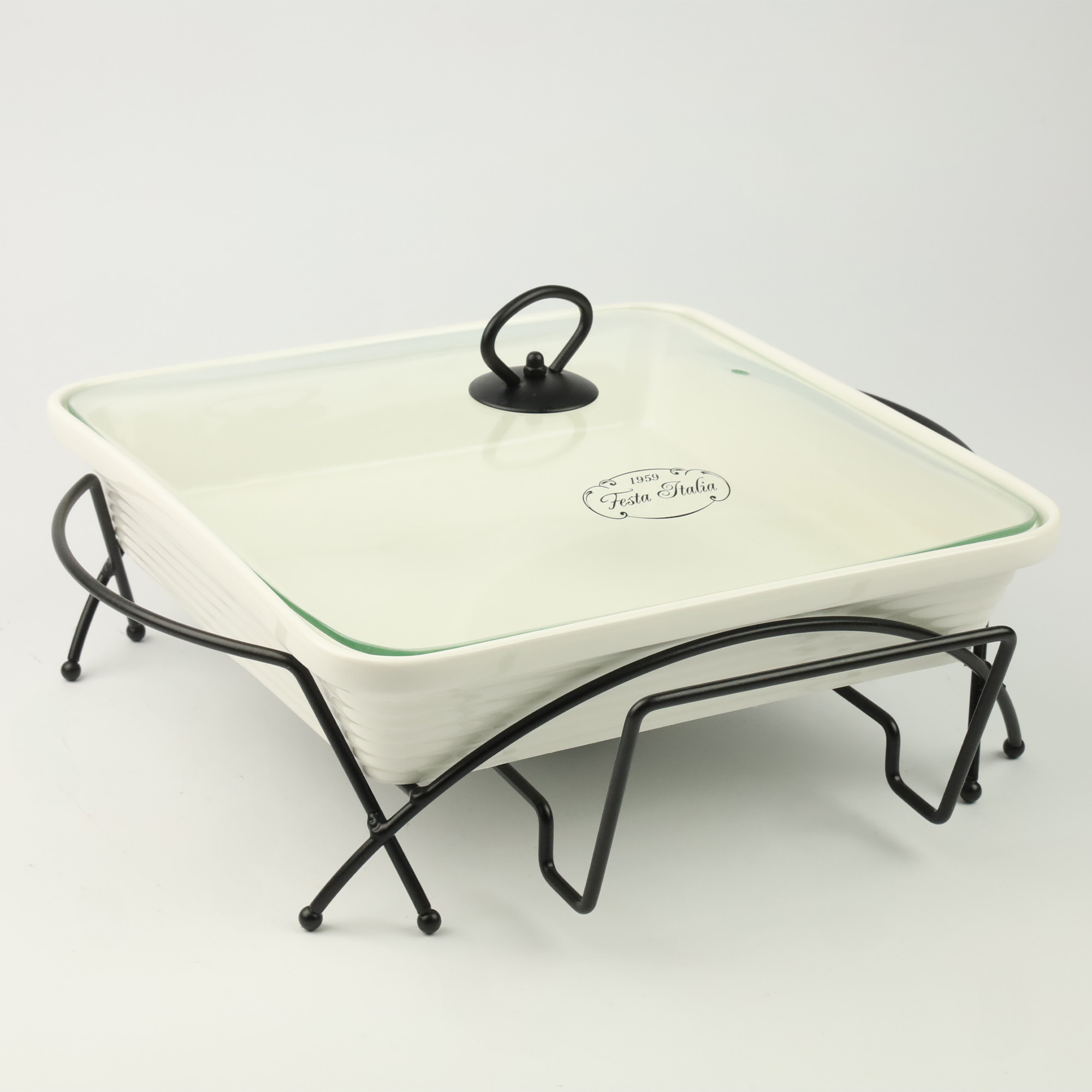 ŻAROODPORNE NACZYNIE CERAMICZNE NA CZARNYM STOJAKU Z PODGRZEWACZEM 2,3L