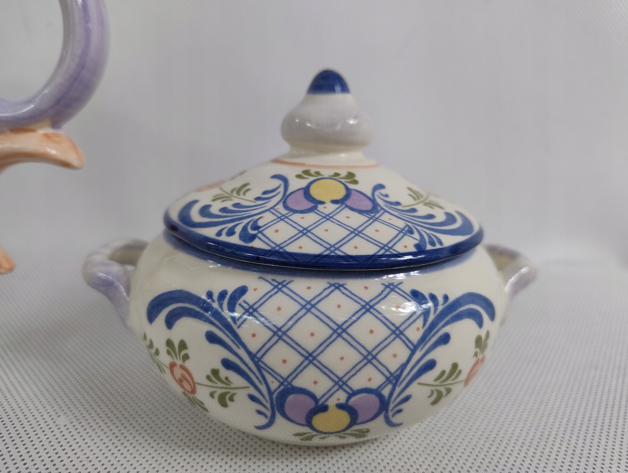 На продажу я предлагаю уникальный центр таблицы с известного лейбла Zeller Fayencerie. Образец был создан талантливым художником Элизабет Шмидт-Пехт, который делает этот набор не только функциональным, но и реальным произведением искусства. Состояние поведения очень хорошее, что делает его идеальным как для повседневного использования, так и для коллекционера. CM, диаметр 11 см, высота 9 см. Это отличная возможность для коллекционеров и прикладных любителей искусства!