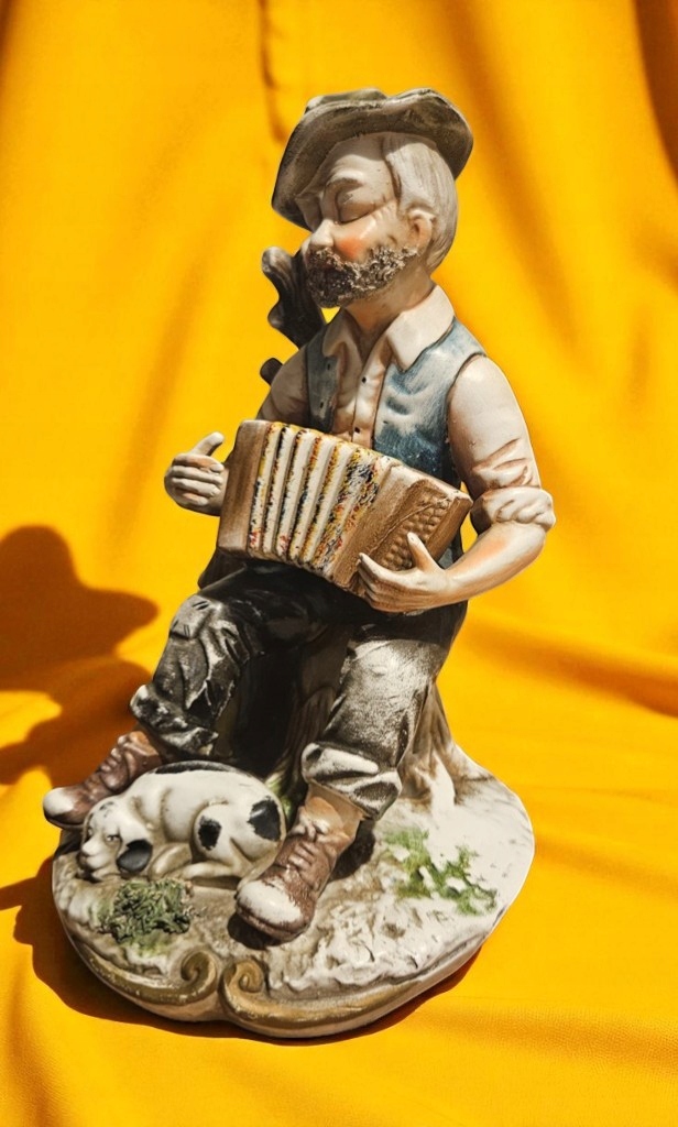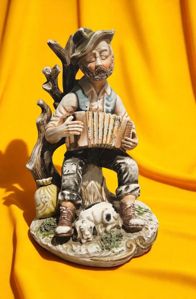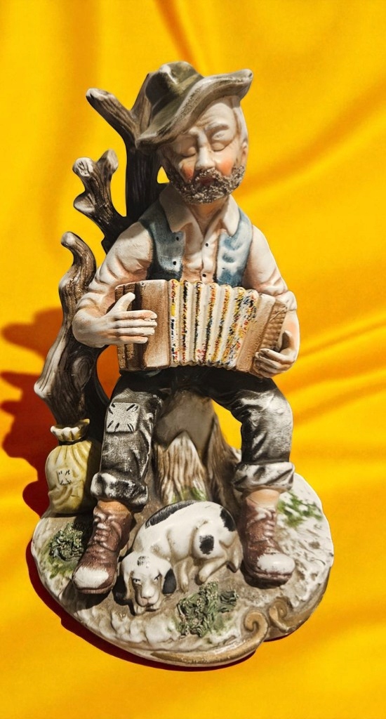 Керамическая фигурная дедушка музыкант с собакой KL