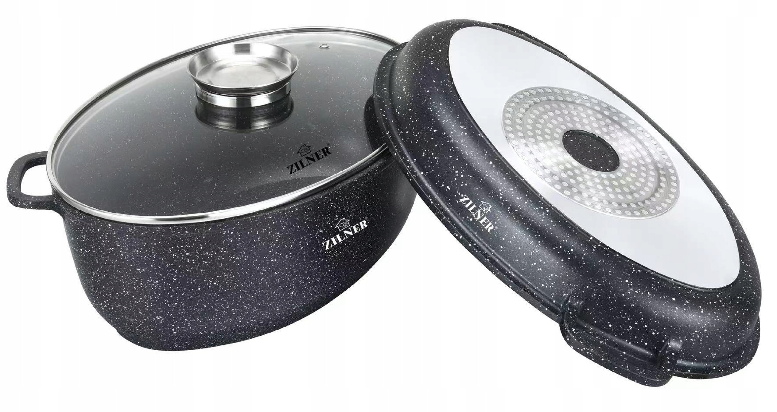 - Керамико-мраморная жаровня ZILNER ZL-1112 – это качественная посуда, служащая как горшок и сковорода.