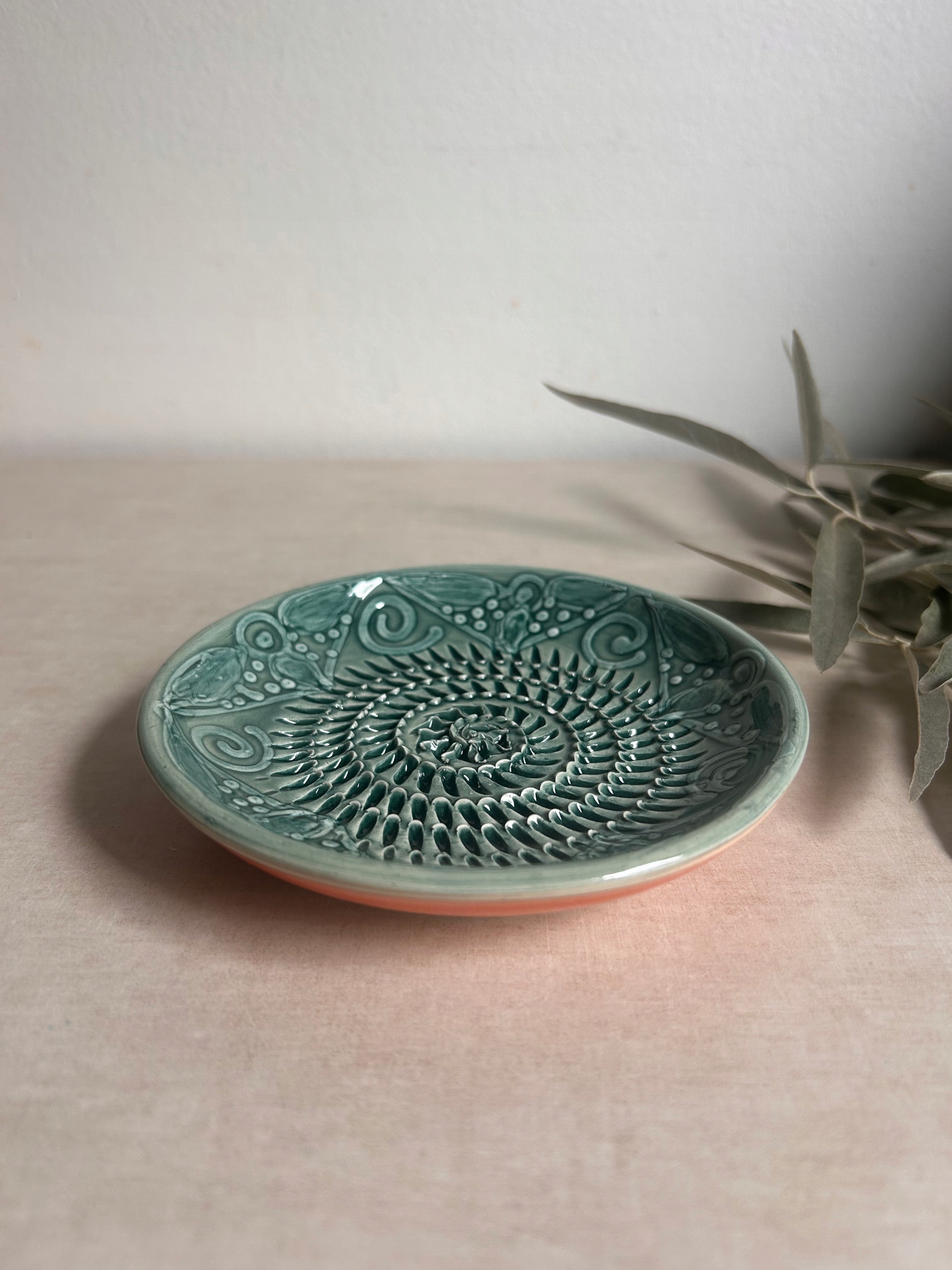 Оригинальная терка, расписанная вручную в форме небольшой тарелки, типичной для испанской кухни.