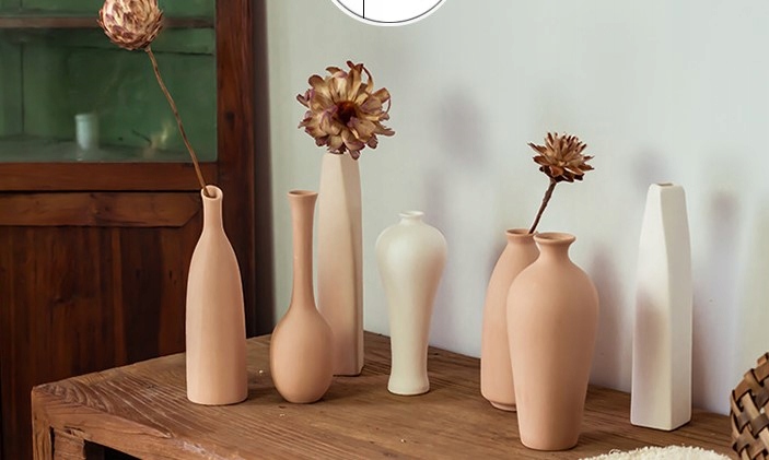 Ваза изготовлена из керамики, она прочная и хорошо сбалансированная. У него необработанный финиш, слегка заметные следы кисти. Матовый и меловой на ощупь. Фантастический, естественный дизайн.