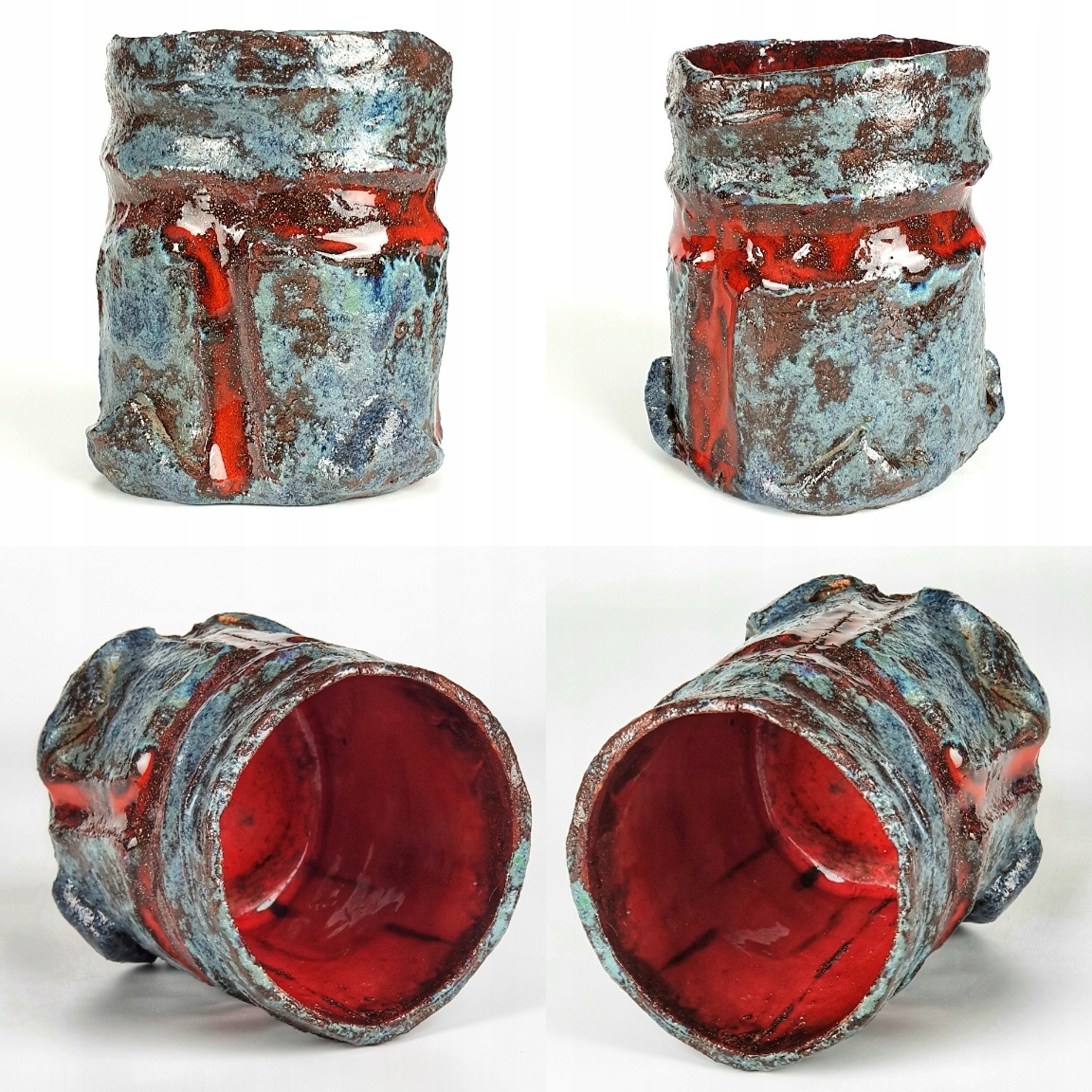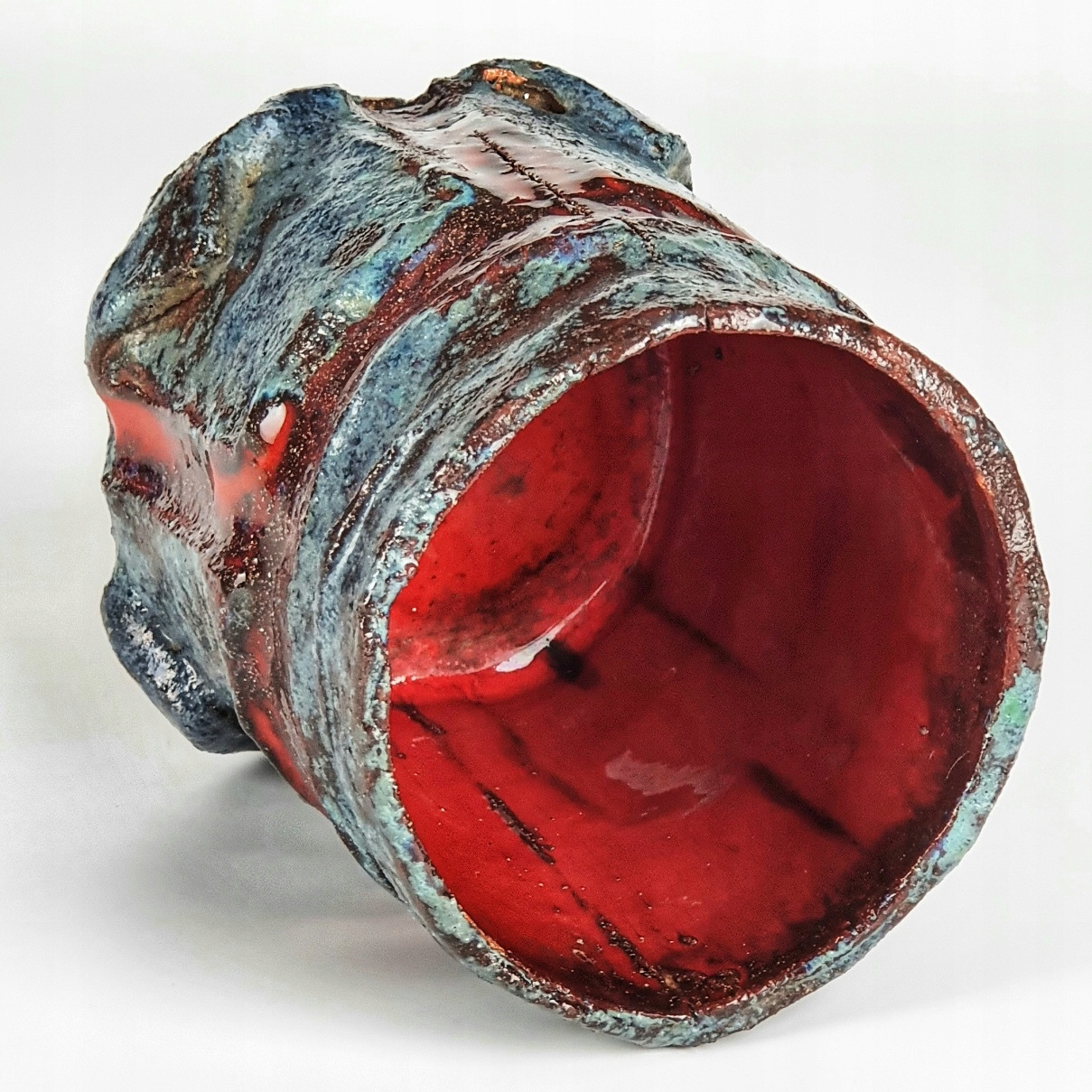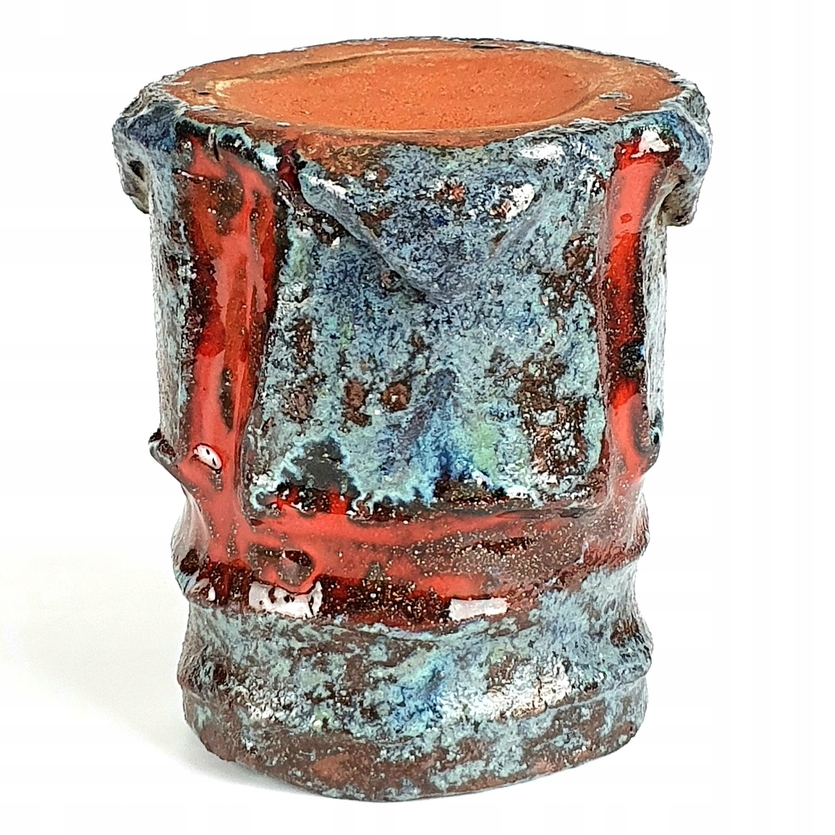 Старая, полностью ручная работа керамическая ваза или кружка для ручек.