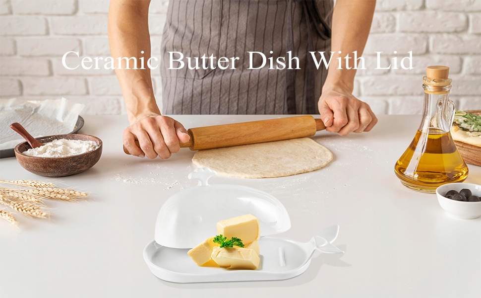 Керамическая масленка «Белый кит» с ручкой крышки в подарок
