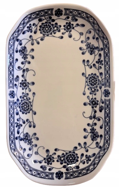 Керамическое блюдо ок. 30,2x18,4 см, цветы бело/голубые