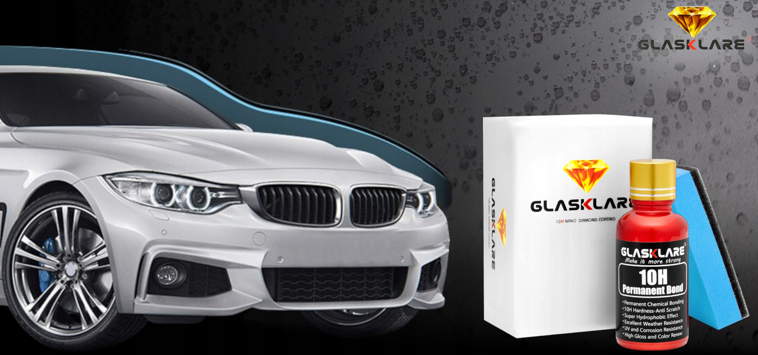 После нанесения покрытия 10H GLASKLARE вода и все виды грязи отталкиваются от лакокрасочного покрытия и не прилипают навсегда. После простого ополаскивания водой автомобиль становится чистым, не оставляя следов грязи💦