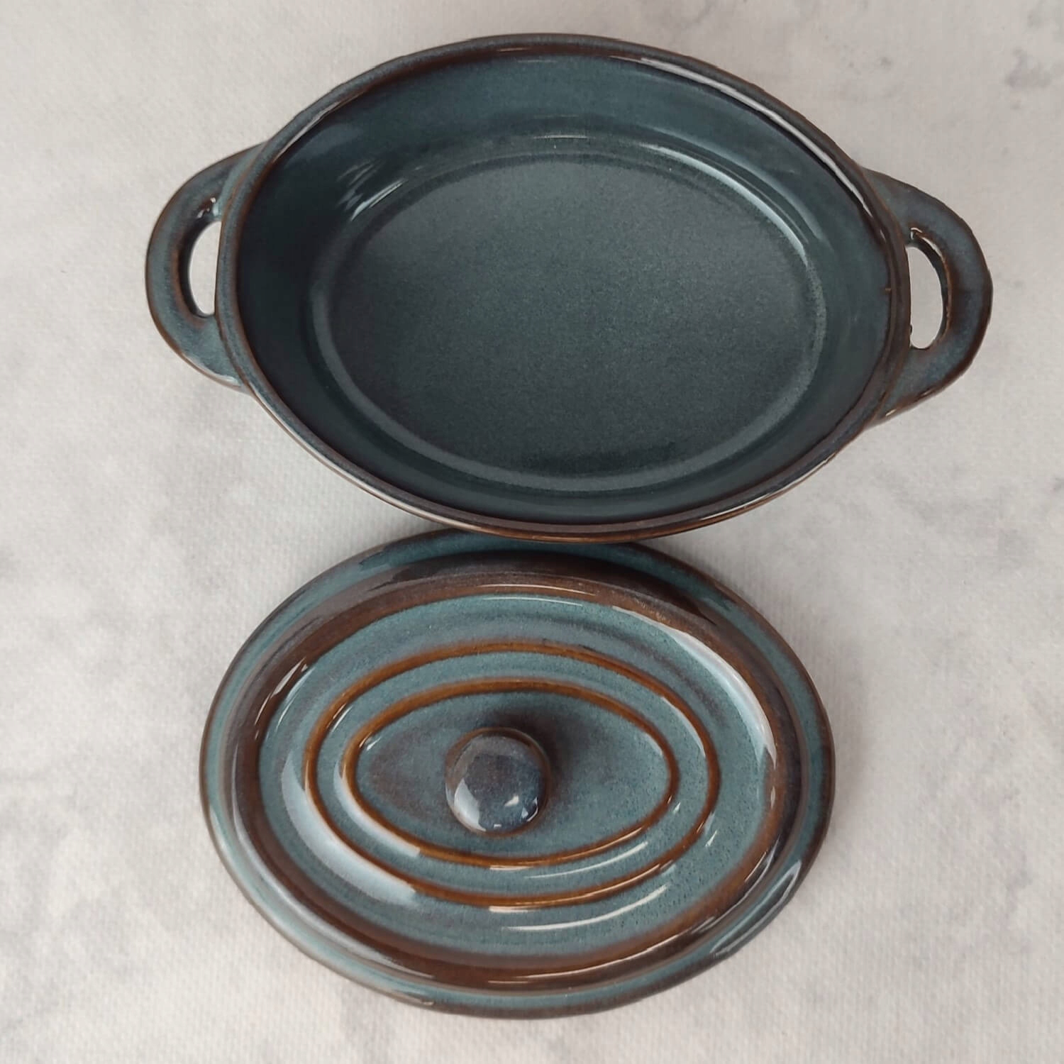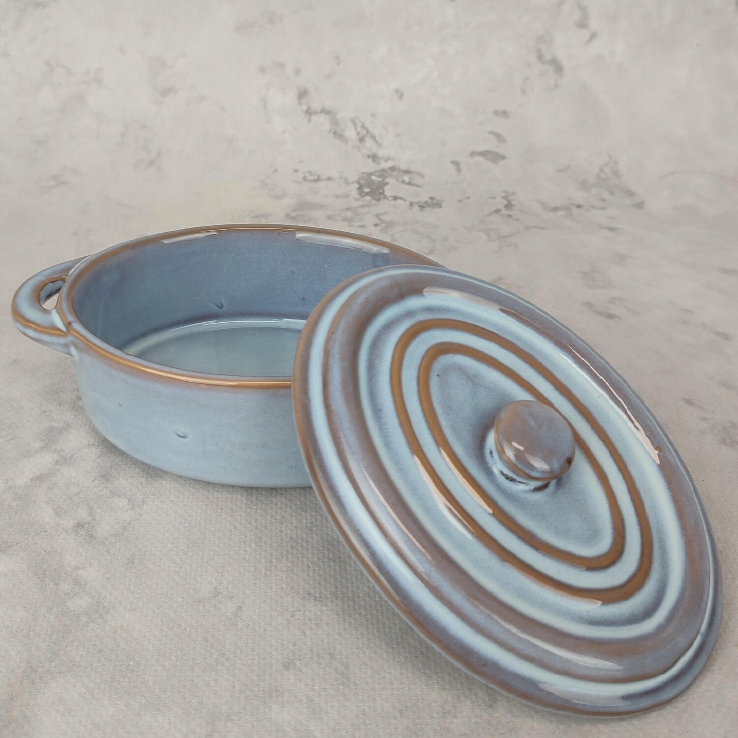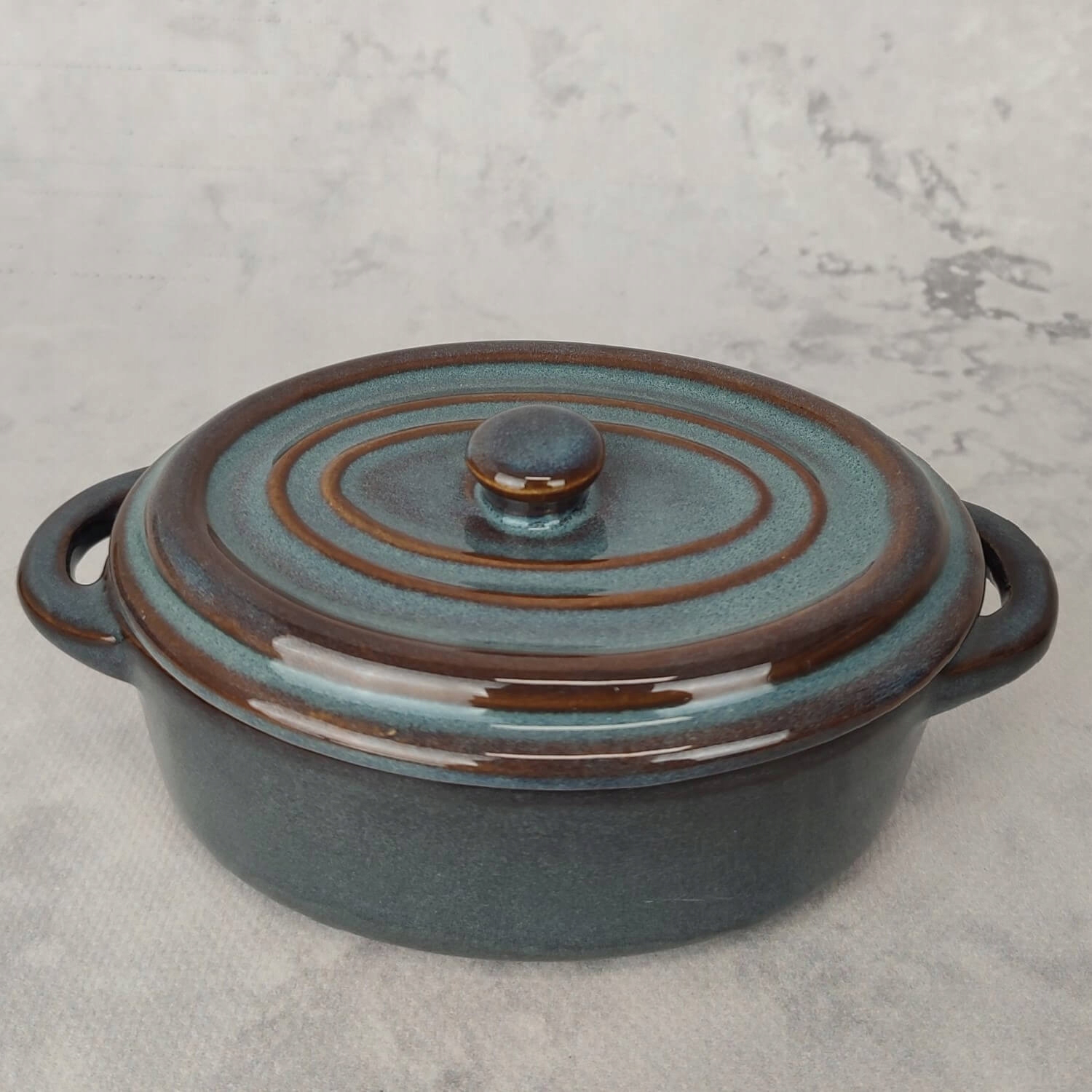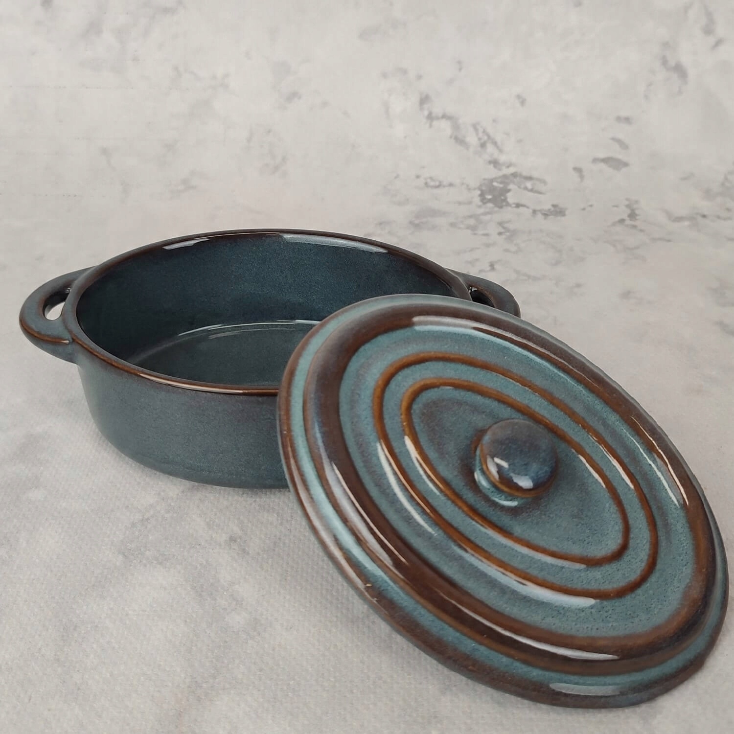 Керамическое тепло -устойчивый сосуд для овальной выпечки с крышкой 220 мл
