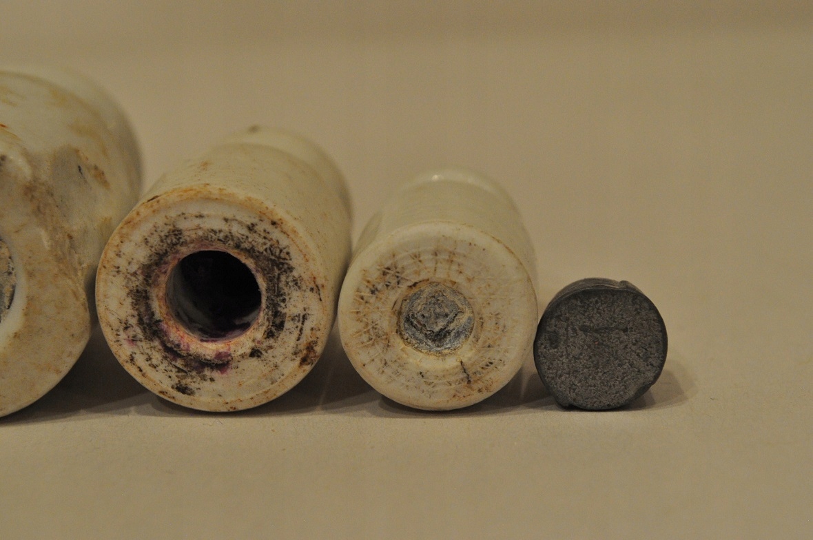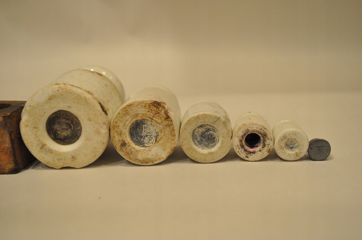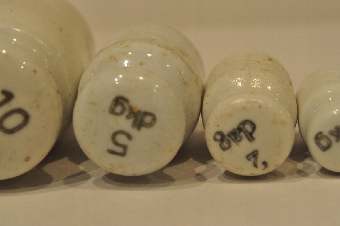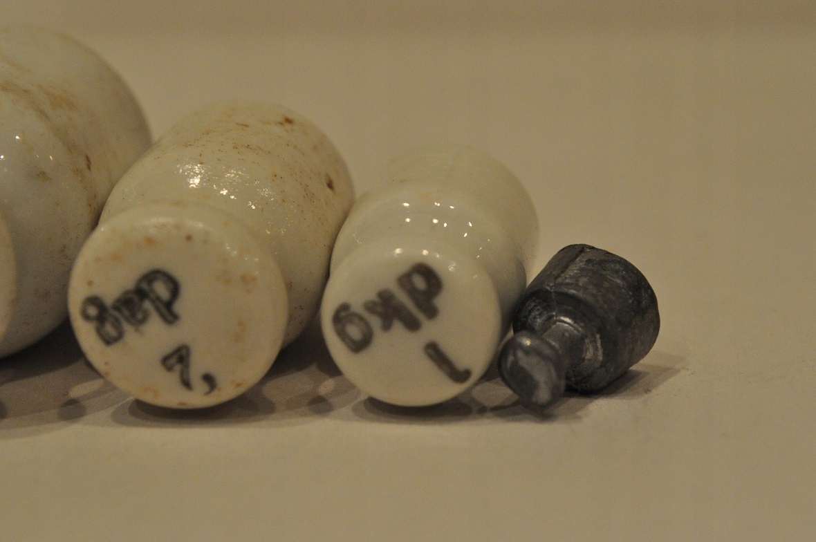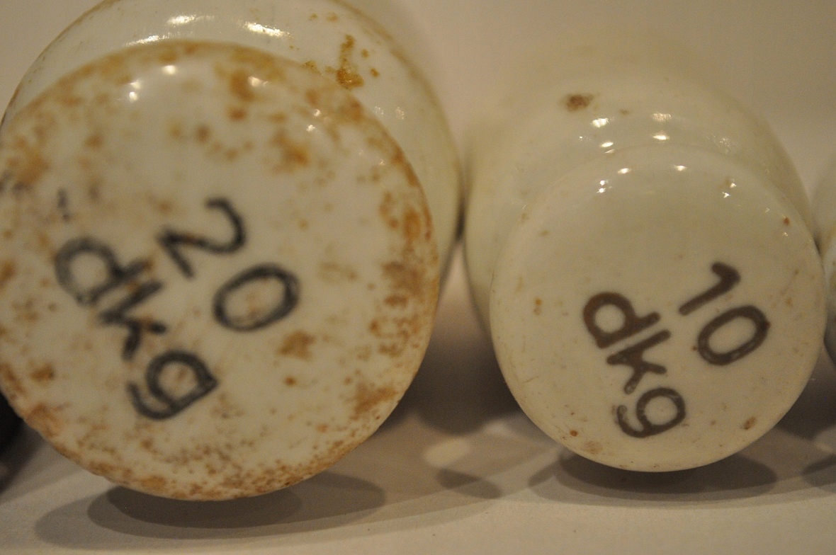 < р> б>р>Гильзы тары заполнены (кроме гири 2 дкг и оцинкованной) свинцовыми вставками с маркировкой легализации 1960-1970-х годов.