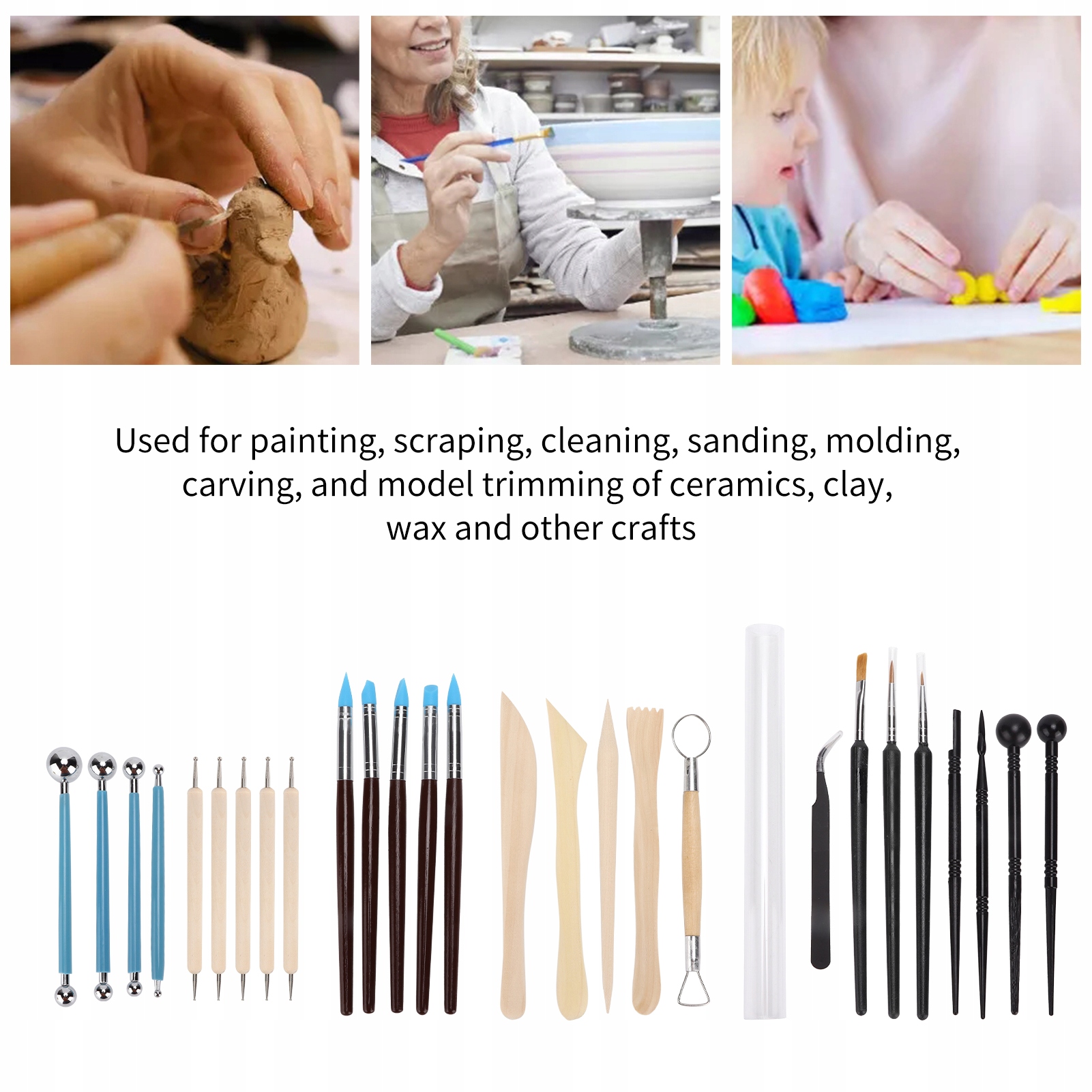 1. Используется для покраски, соскабливания, очистки, шлифовки, лепки, резьбы и моделирования керамики, глины, воска и других поделок