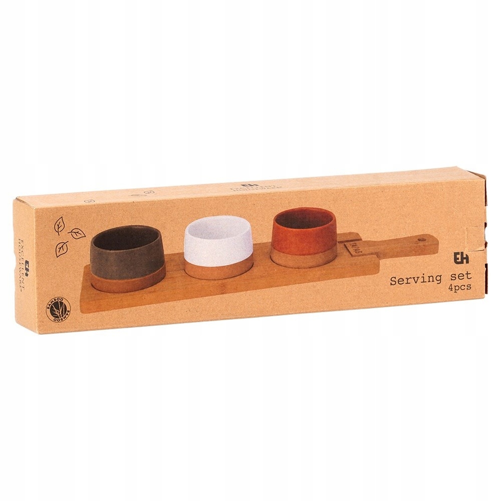 КЕРАМИЧЕСКИЕ ЧАШКИ ДЛЯ ЗАКУСОК НА ПОДНОСЕ СЕРВИРОВОЧНЫЙ НАБОР 4EL 48СМ