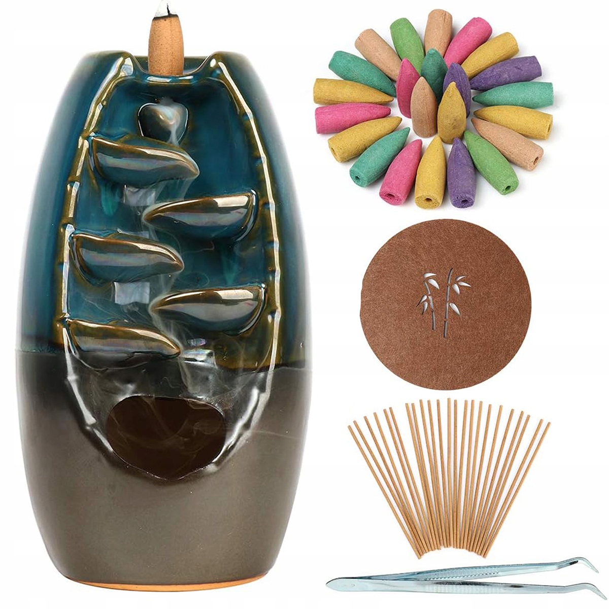 💨 【【ручной, таинственная атмосфера】: керамические удары сделаны вручную. Он загорается с обратным конусом, а дым падает как водопад. Конический фейдер окружен дымом, который выглядит великолепно и загадочно.