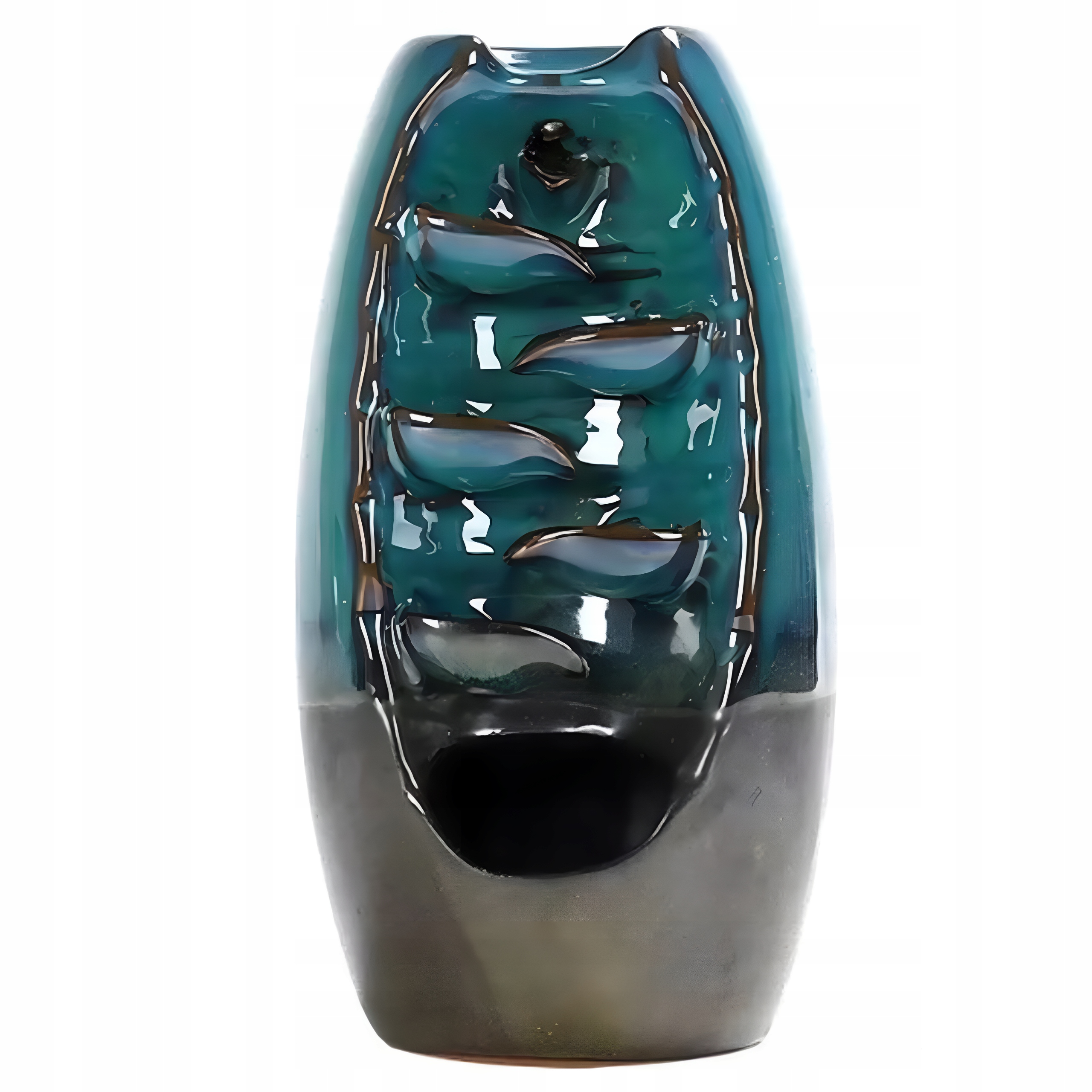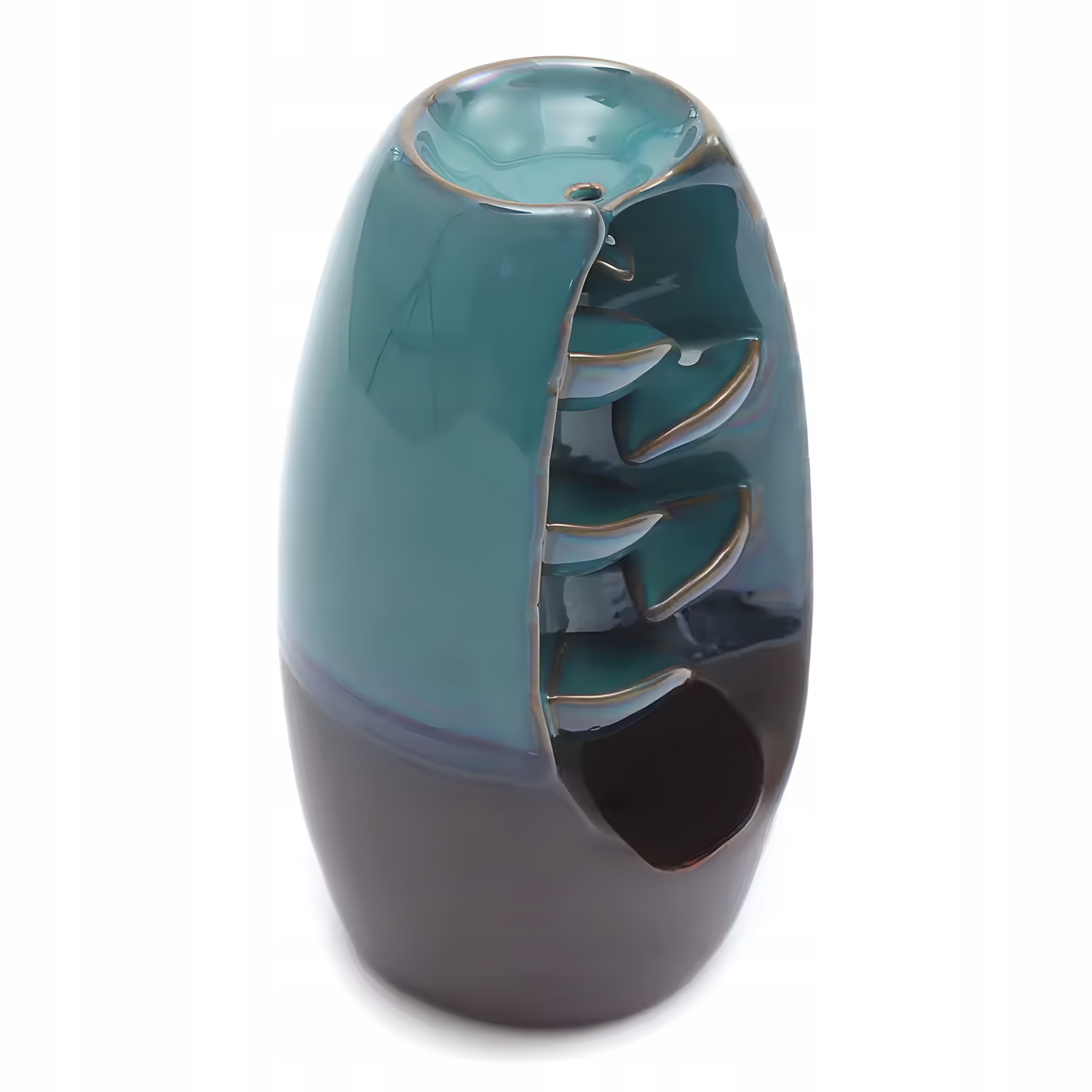 Керамический ароматический камин Текущий водопад — это уникальное украшение, сочетающее в себе элегантность и релаксацию. Изготовленный из керамики, он впечатляет своим глубоким синим цветом и блестящей глазурью. После размещения конуса благовоний сверху дым падает водопадом, создавая завораживающий визуальный эффект. Идеально подходит для ароматерапии, медитации или как декоративный элемент интерьера. Он приносит мир, гармонию и приятный аромат в каждую комнату.