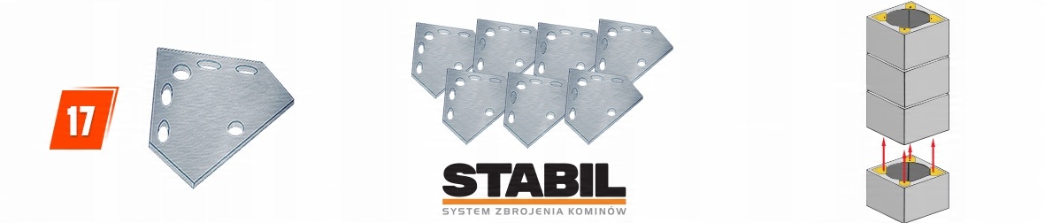 Стабил (17) – используется для стабилизации вертикальной конструкции дымохода. В комплект входит 8 деталей дымоходной системы. анкерные элементы, которые при необходимости можно использовать для армирования при строительстве дымохода. Система STABIL предназначена для придания жесткости и стабилизации дымоходных систем против горизонтальных сил, действующих на конструкцию. Закрепив элементы STABILA на цементном растворе и соединив их с помощью соединителей, передающих растягивающие усилия, мы обеспечиваем жесткость конструкции дымохода при неблагоприятных погодных условиях. Дымоходные блоки часто армируют ребристыми стержнями, которые не всегда выполняют свою роль, поскольку бетонное покрытие, фиксирующее стержни, недостаточно. В случае с системой STABIL мы не ограничены диаметром отверстий в блоке и можем быть уверены, что элементы арматуры прочно соединены друг с другом. Система STABIL используется для усиления дымоходов, выступающих над поверхностью крыши максимум на 120 см.