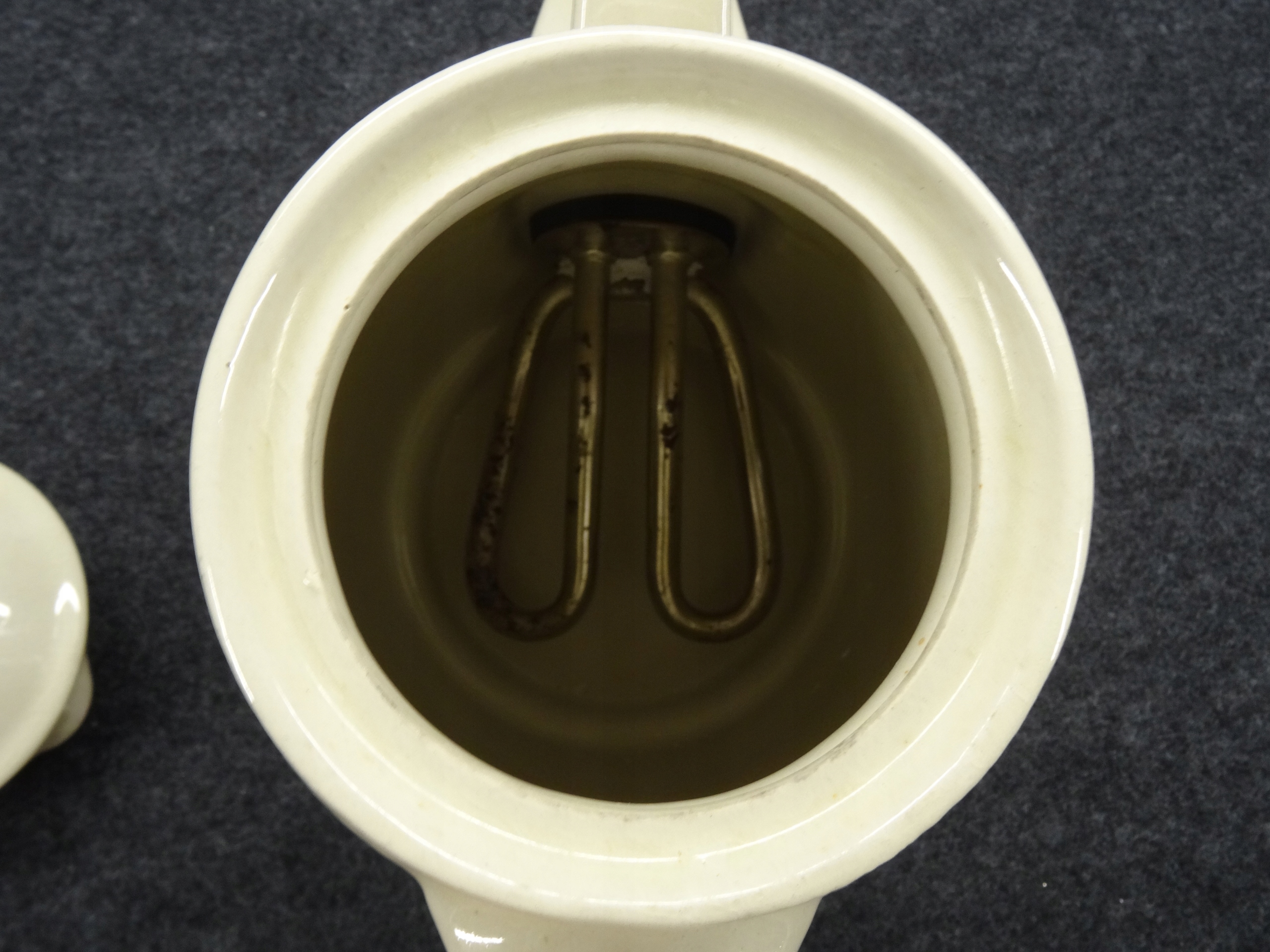 - Диаметр 12,5 см. Верхнее покрытие, дно чайника с камнем, особенно крышка с эмальными трещинами. Состояние, как на фотографиях.