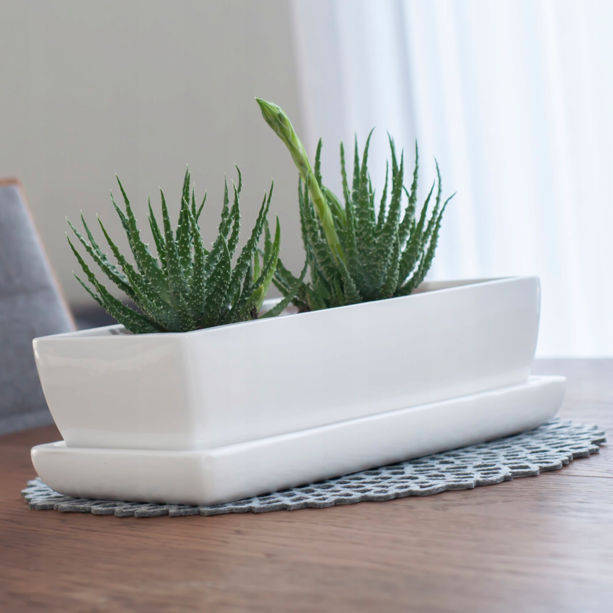 Керамическое растение кактус, 27 см, белый эко-горшок