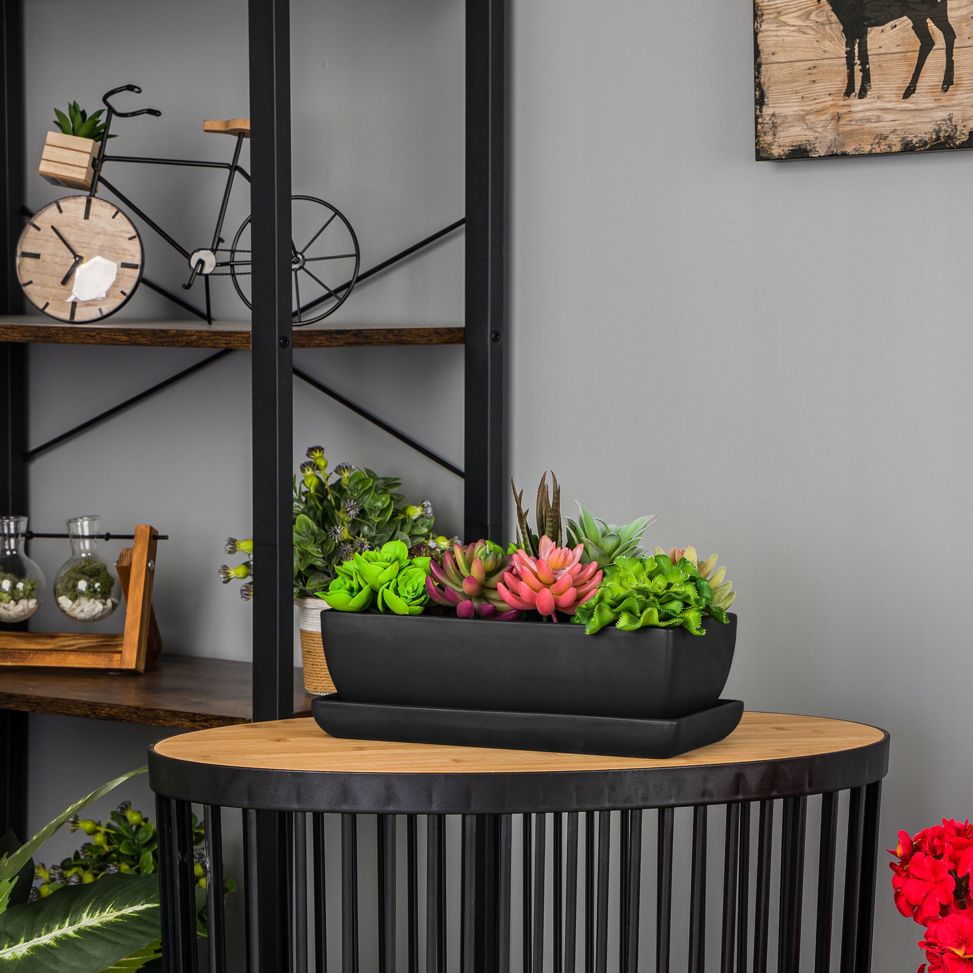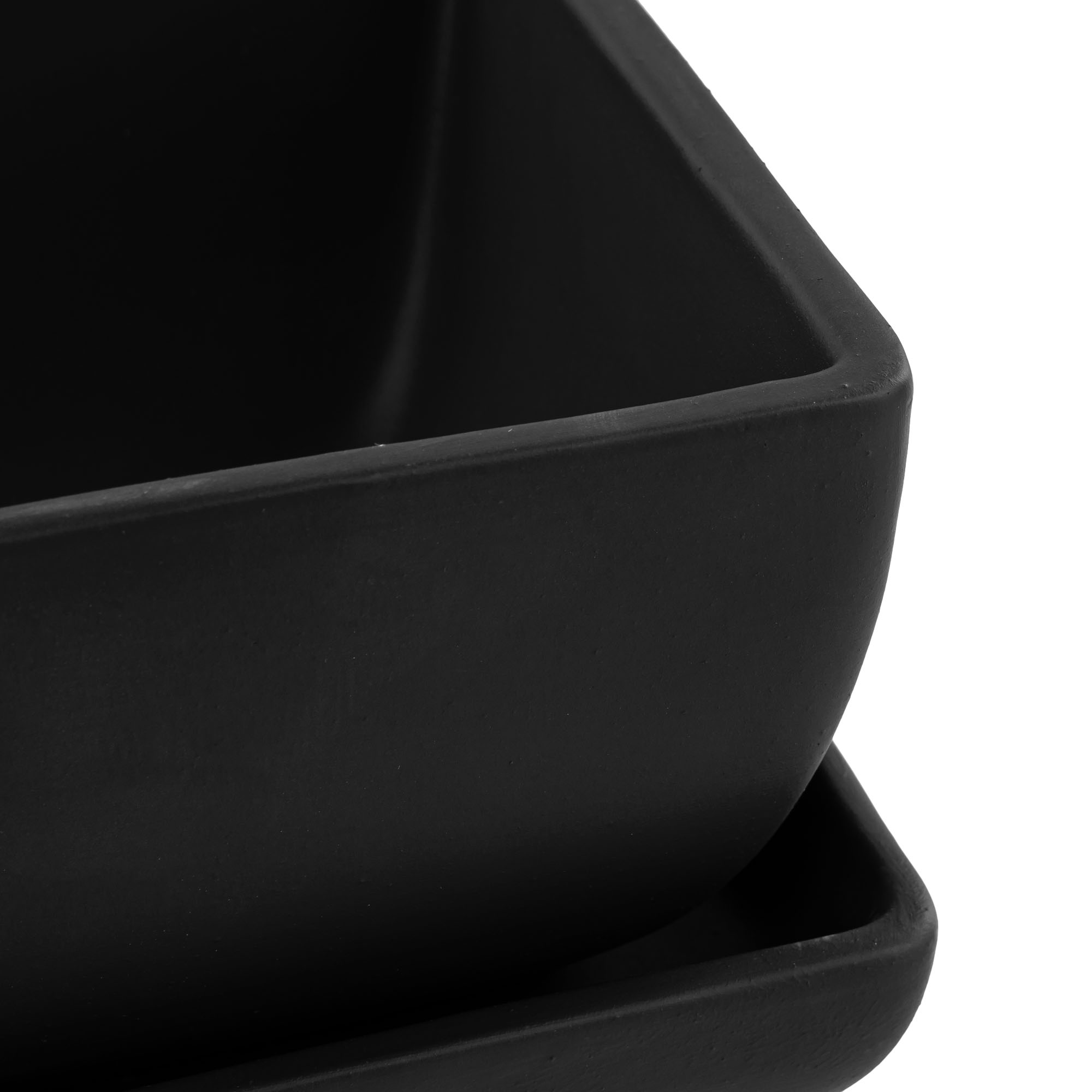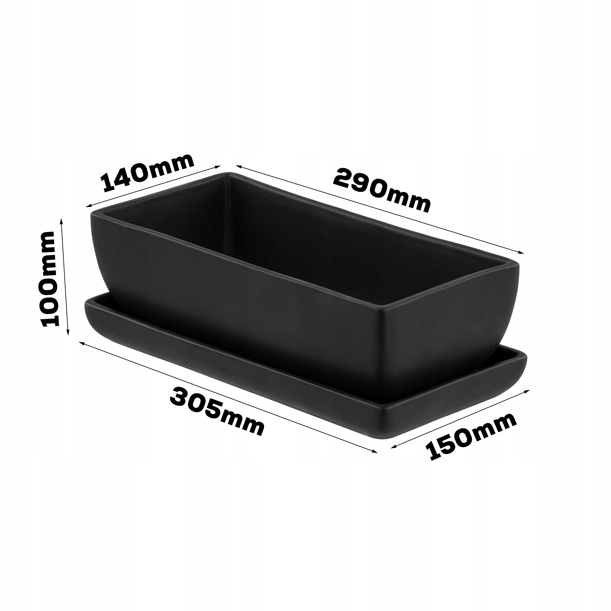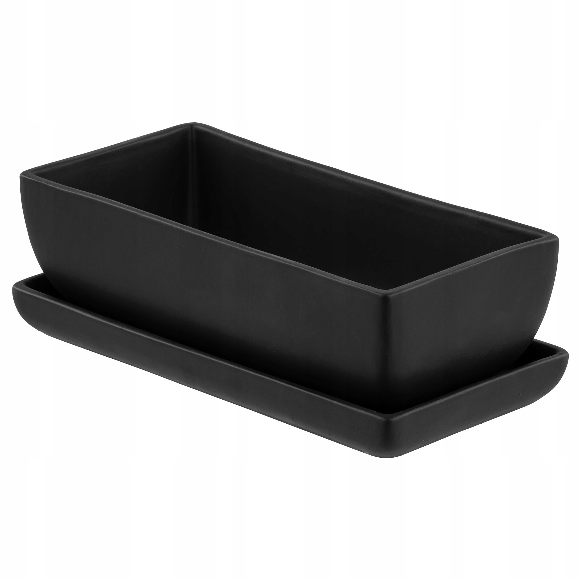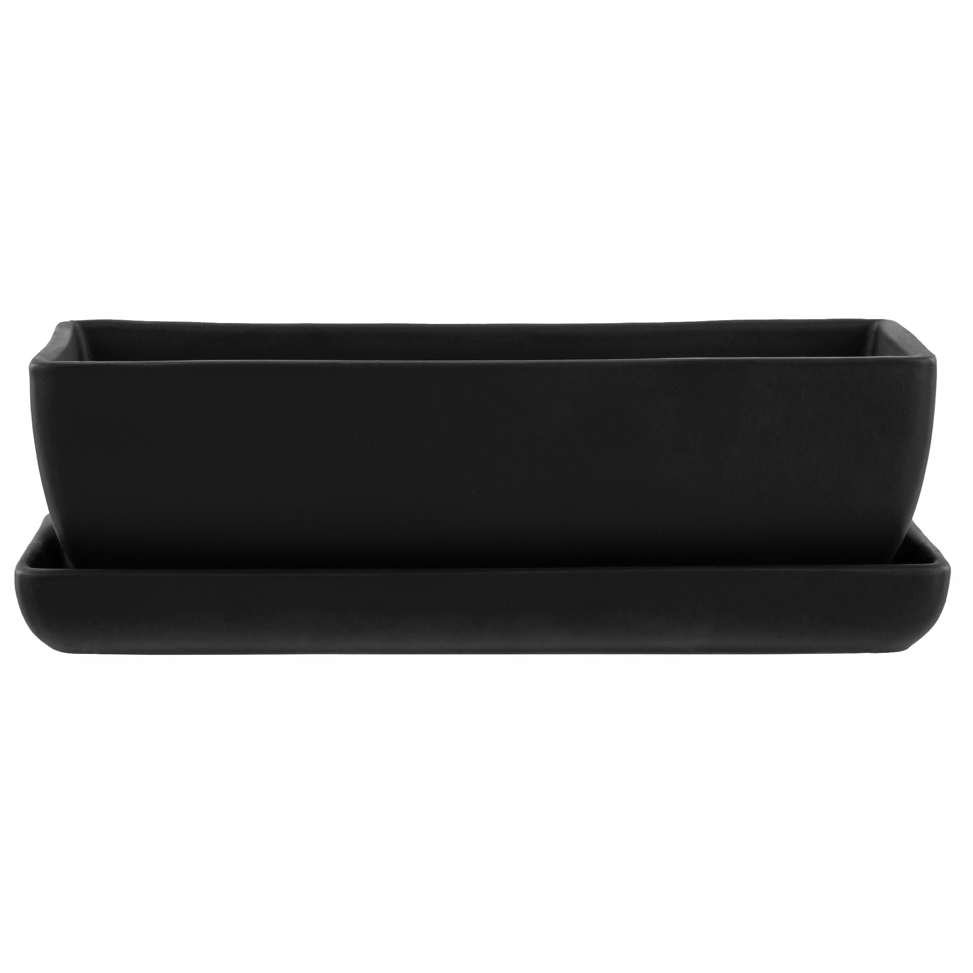 Керамический горшок современный черный коврик 29 см. Прямоугольник Cactirzer