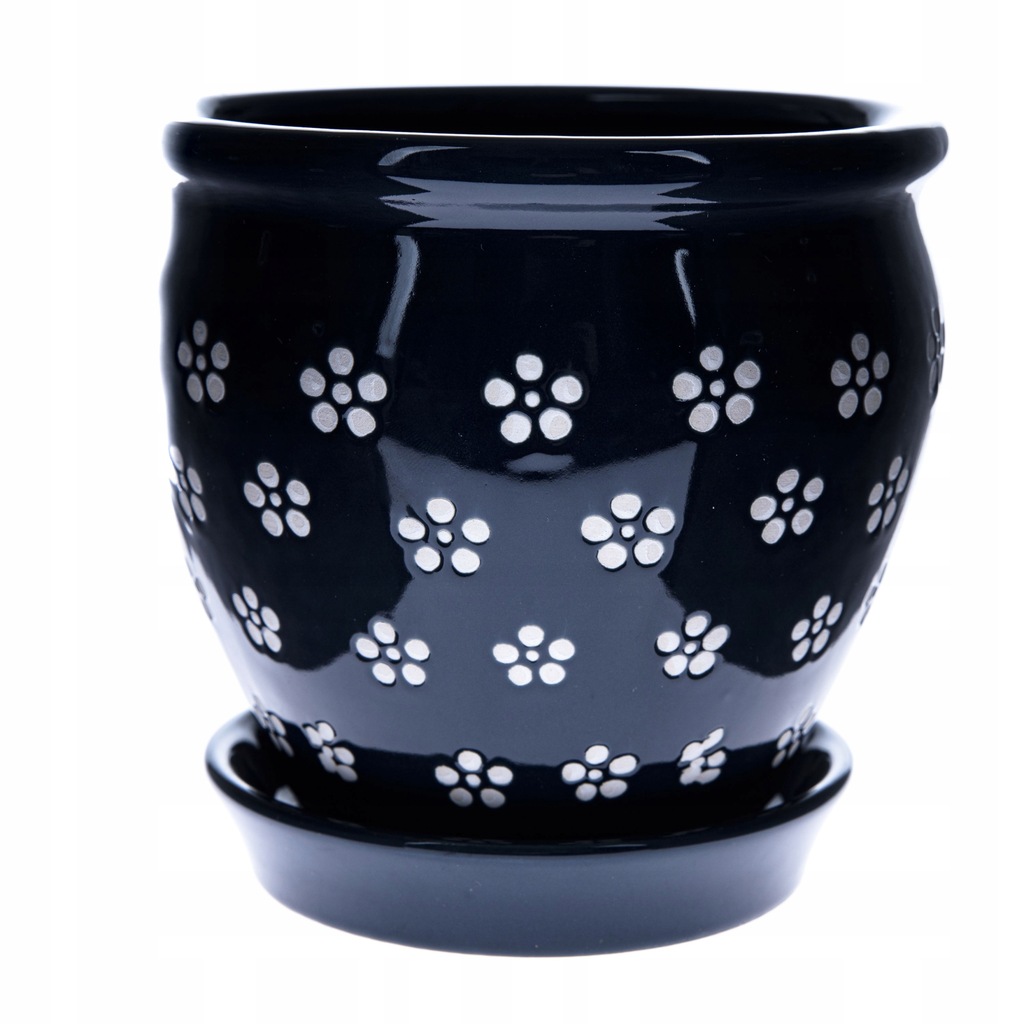 Керамический горшок с базовыми синими белыми цветами 15 x 14 см.