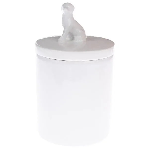 Керамічний контейнер з кришкою для їжі та ласощів з білою собачкою