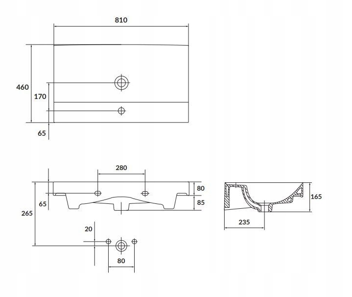 Умывальник мебельный керамический Larga 80 см