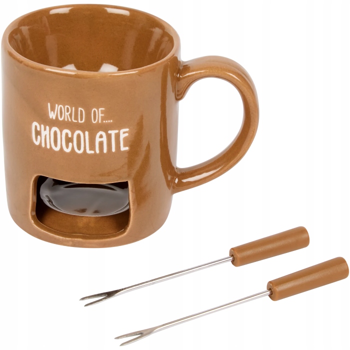 КЕРАМІЧНА ЧАШКА З ВУШКОМ ДЛЯ ФУНДУКА З ШОКОЛАДУ + 2 ВИДЕЛКИ