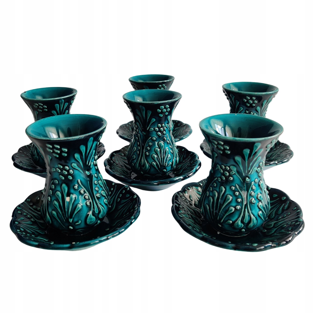 ▶️ 1 набор керамических чашек с бирюзой из Турции (набор состоит из 12 предметов)