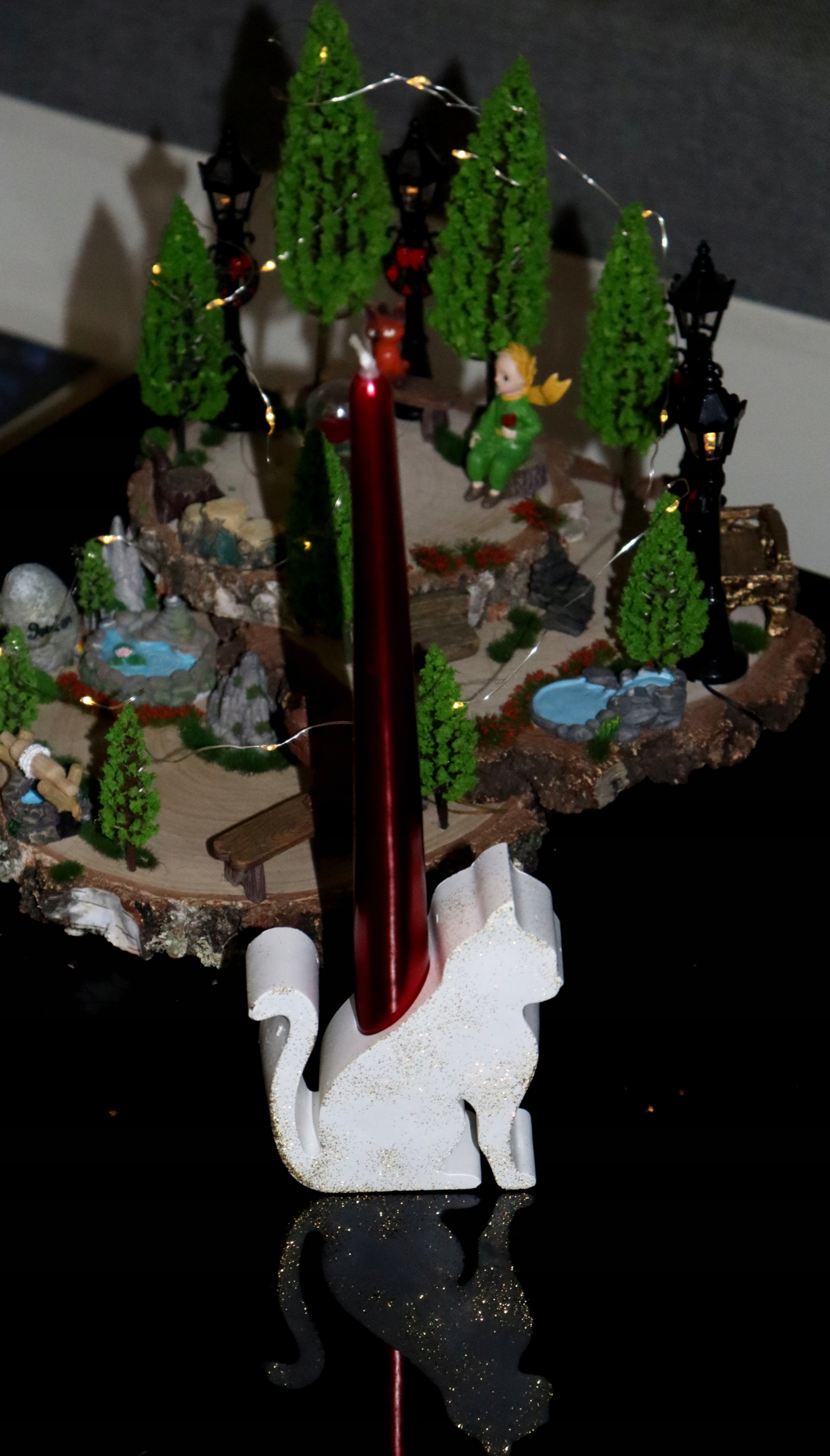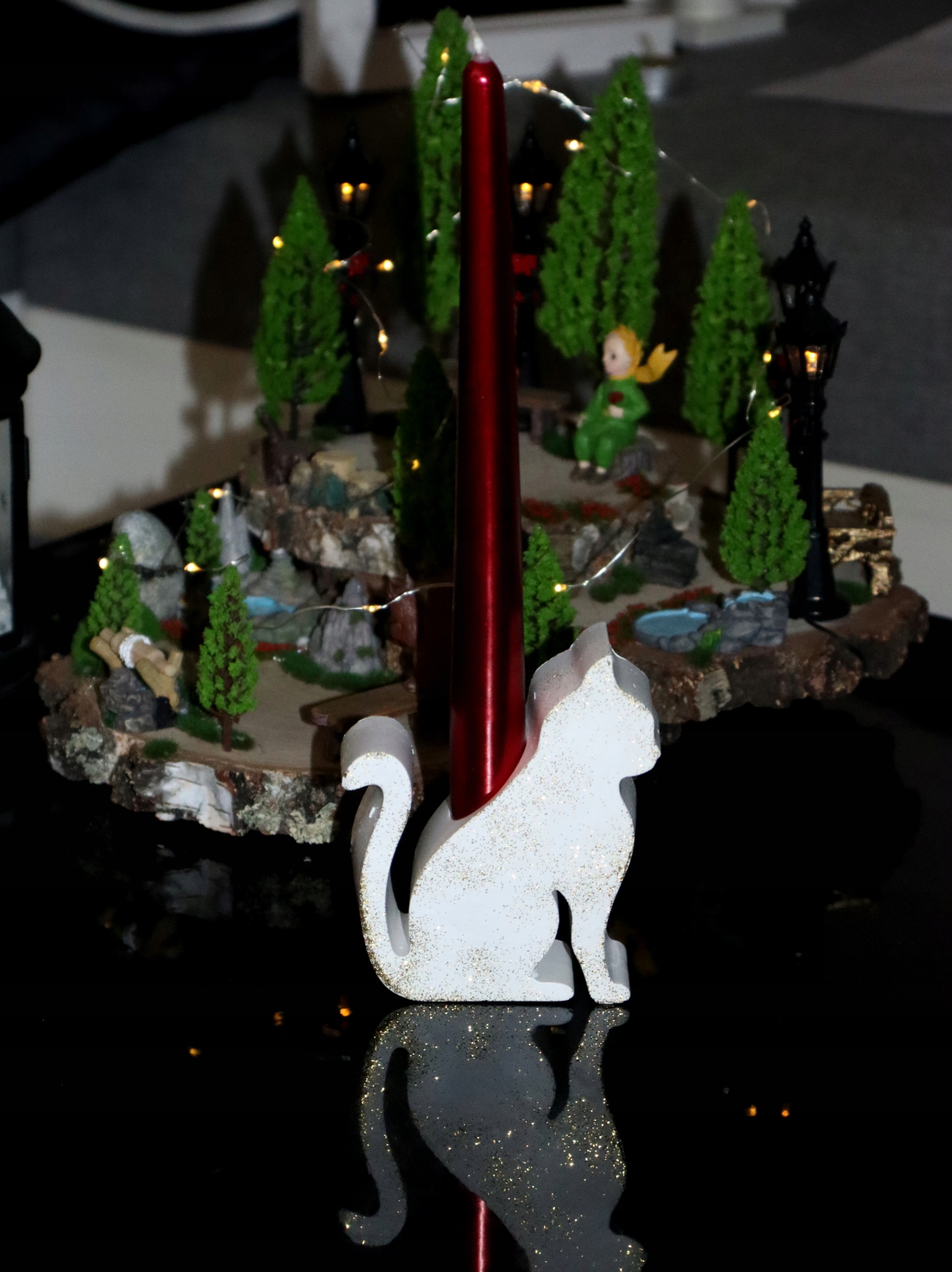 Керамический блеск подсвечник - Китти, продольная свеча, канун Рождества