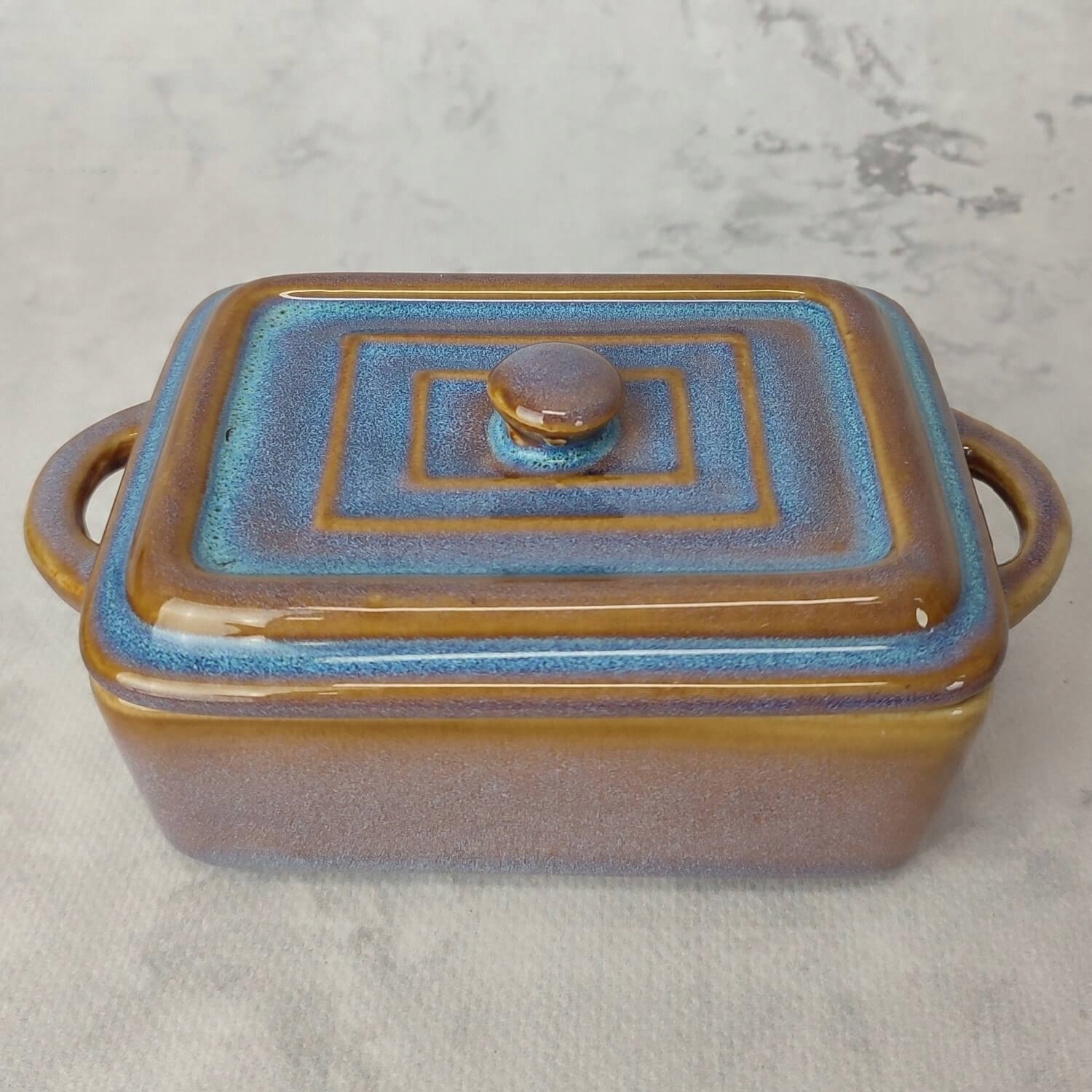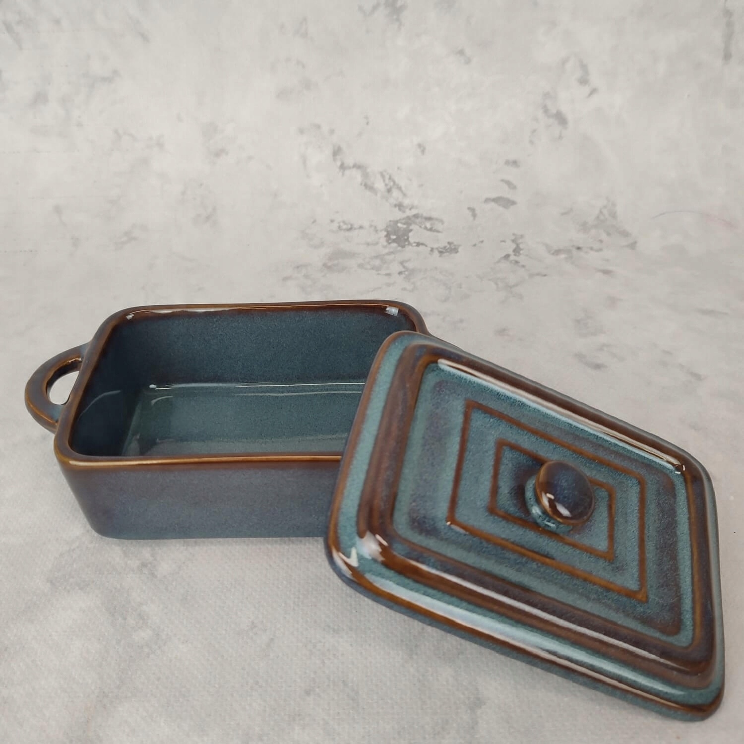 Керамическое тепло -устойчивый сосуд для прямоугольной выпечки с крышкой 220 мл