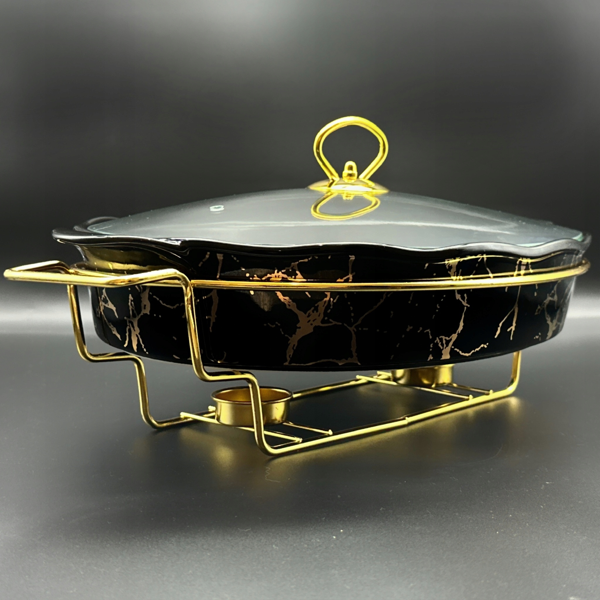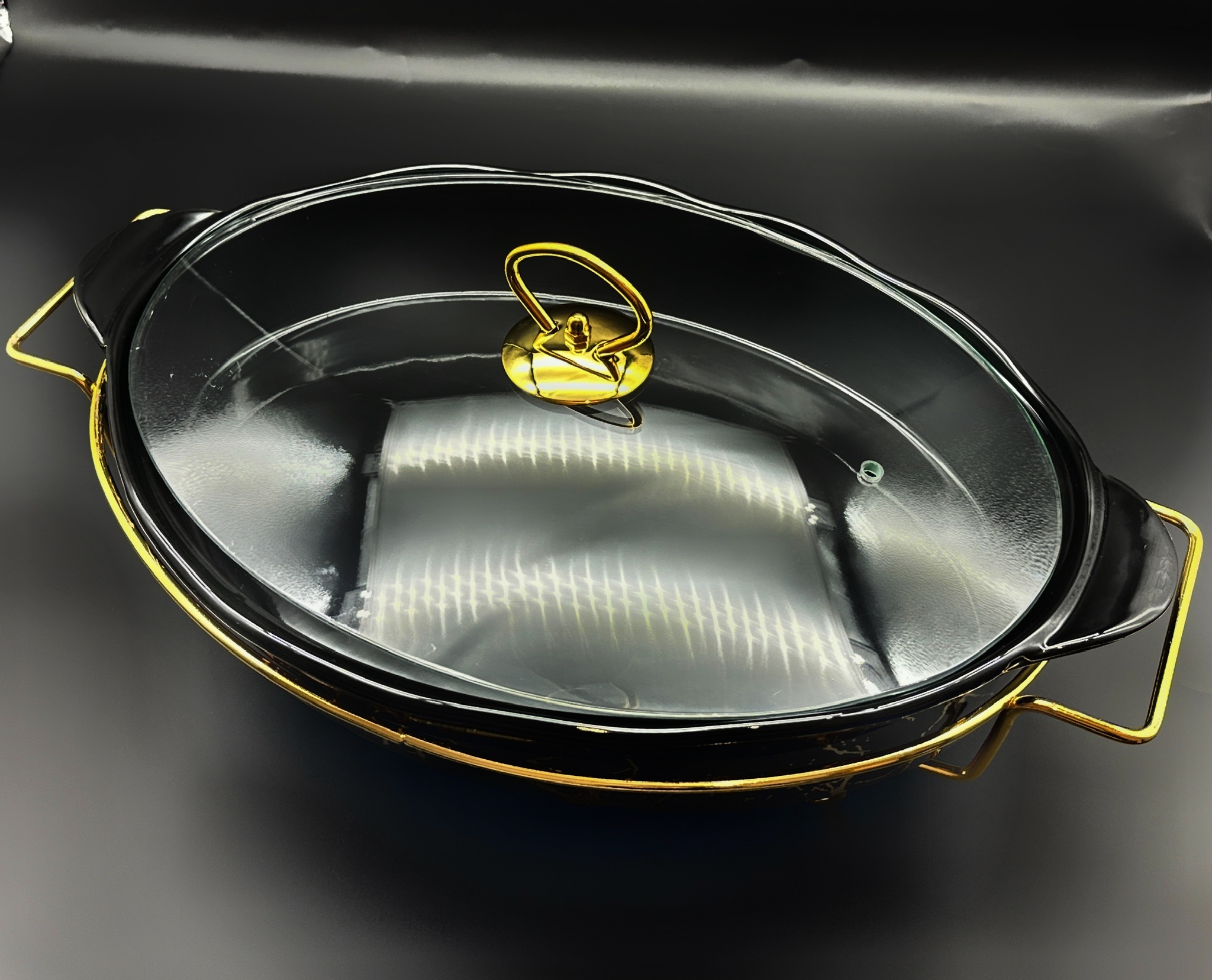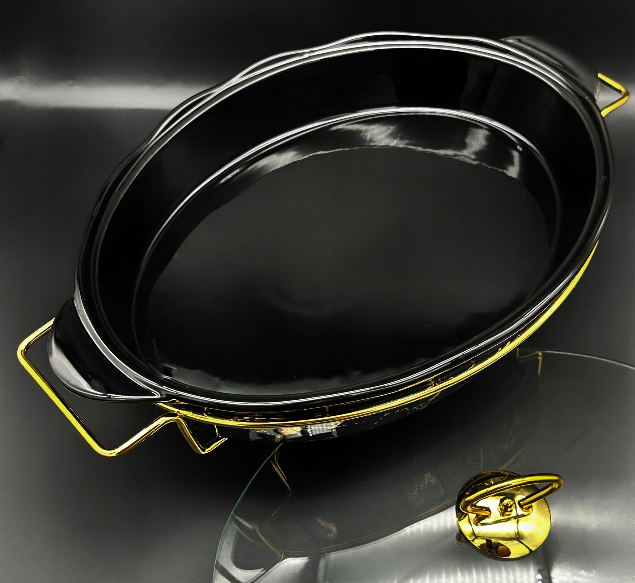 Керамическое тепло -резистентное сосуд с овальным обогревателем 2.3L Черный и золотой h2>