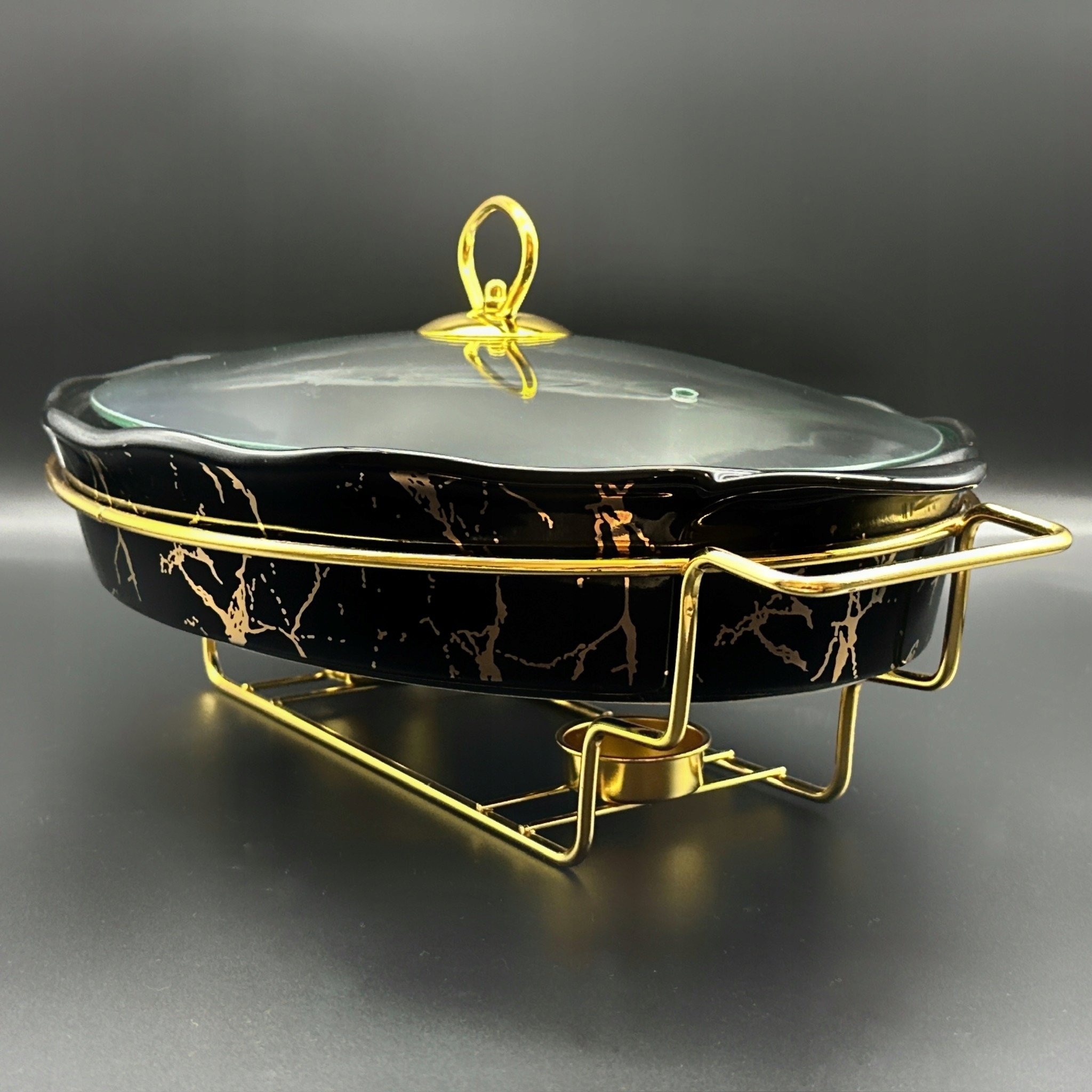 Керамическое тепло -устойчивый сосуд с овальным обогревателем 2.3L Черный и золотой