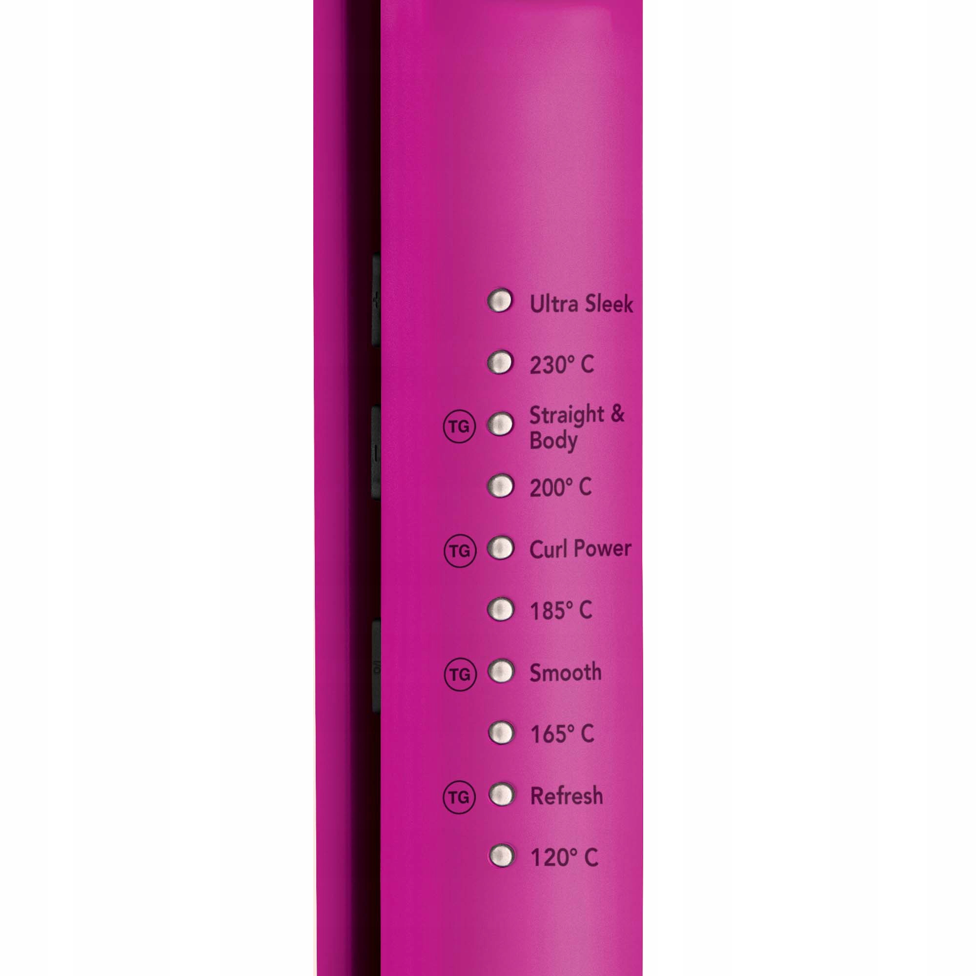 5-уровневая регулировка температуры позволяет настроить ее в соответствии со структурой волос и ожидаемым эффектом. Дополнительно технология TruGuard™ защищает окрашенные волосы (до температуры 200°С).