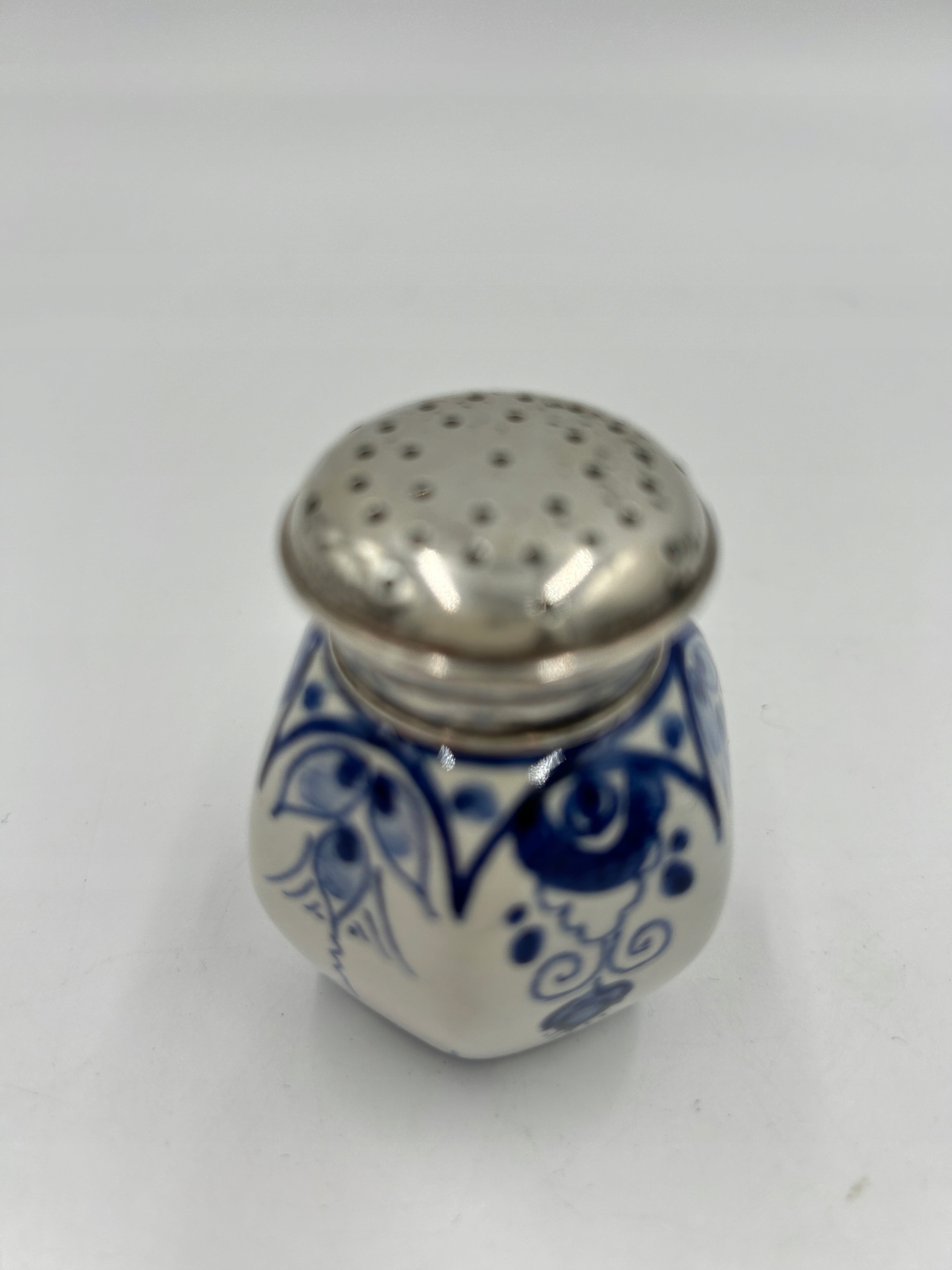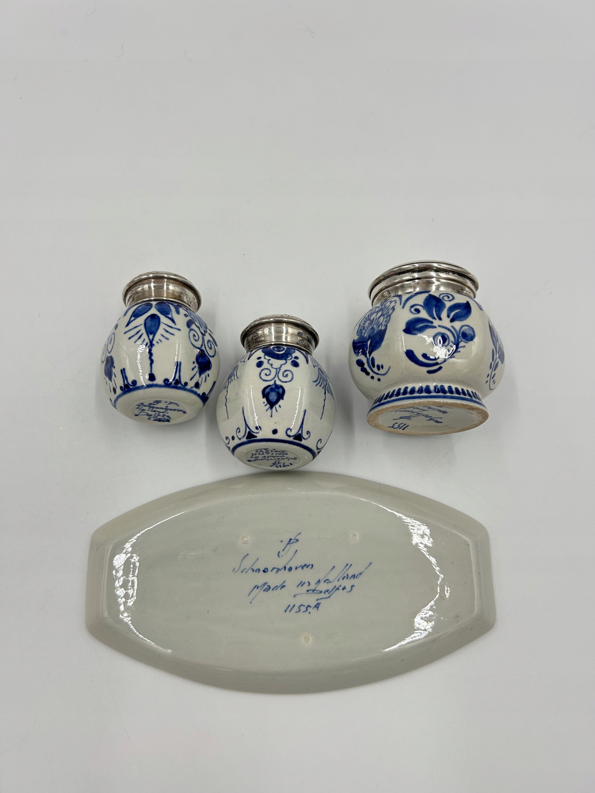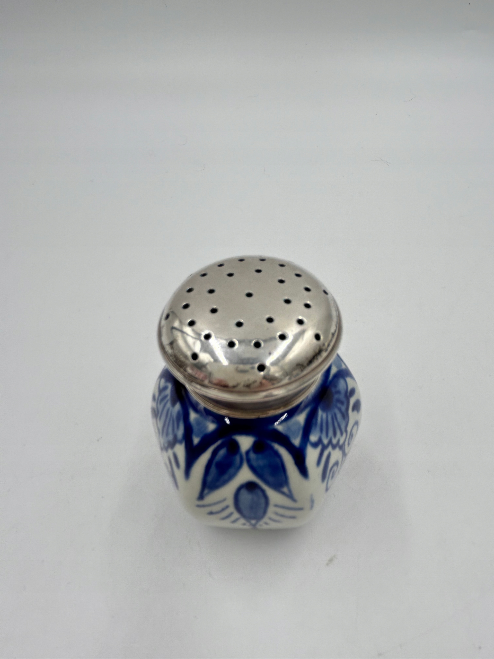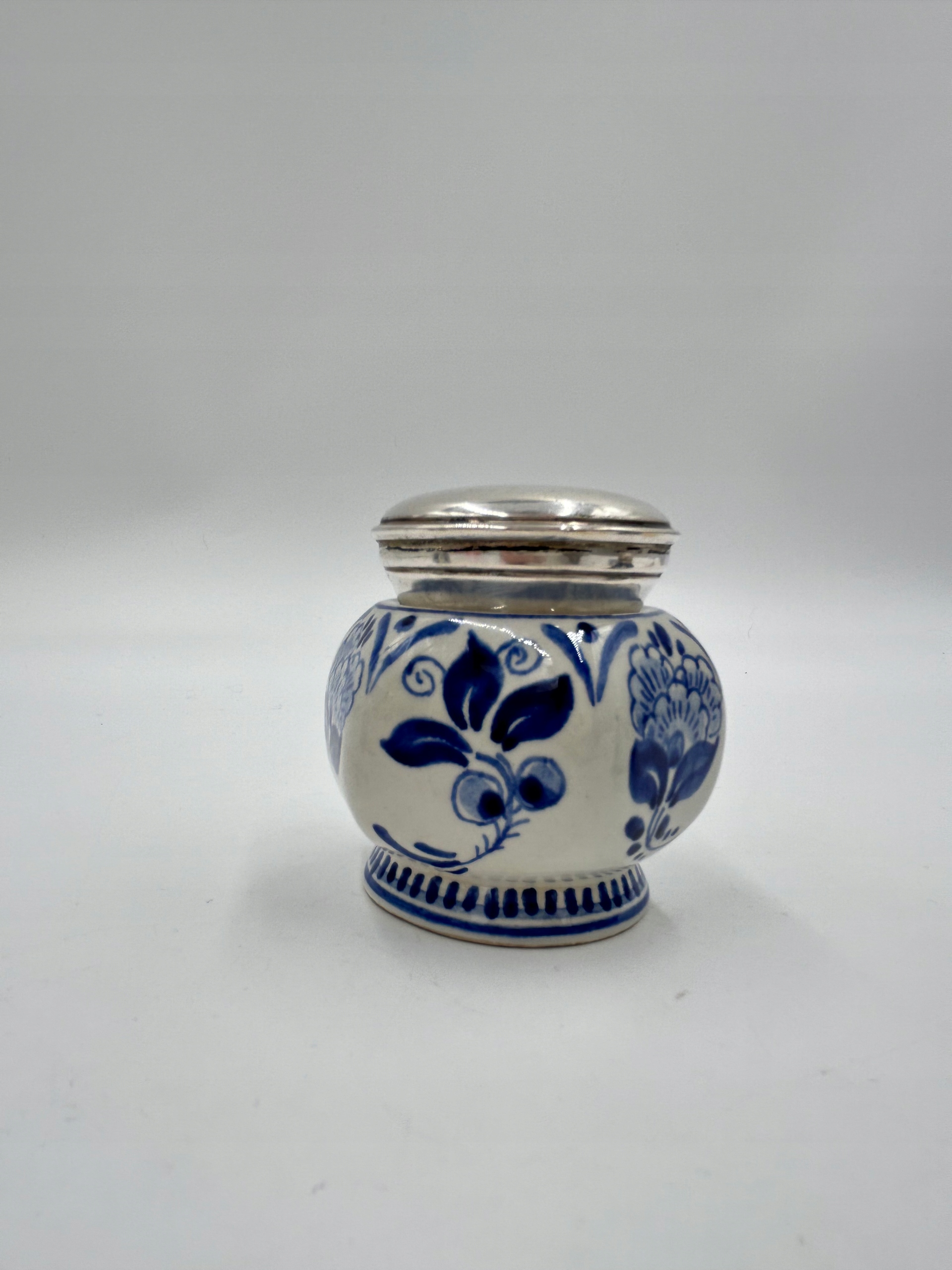 Тема продажи -это набор красивых фарфоровых спинов, ручной работы, приспособленной в серебро 925. Голландия, Дельфты.