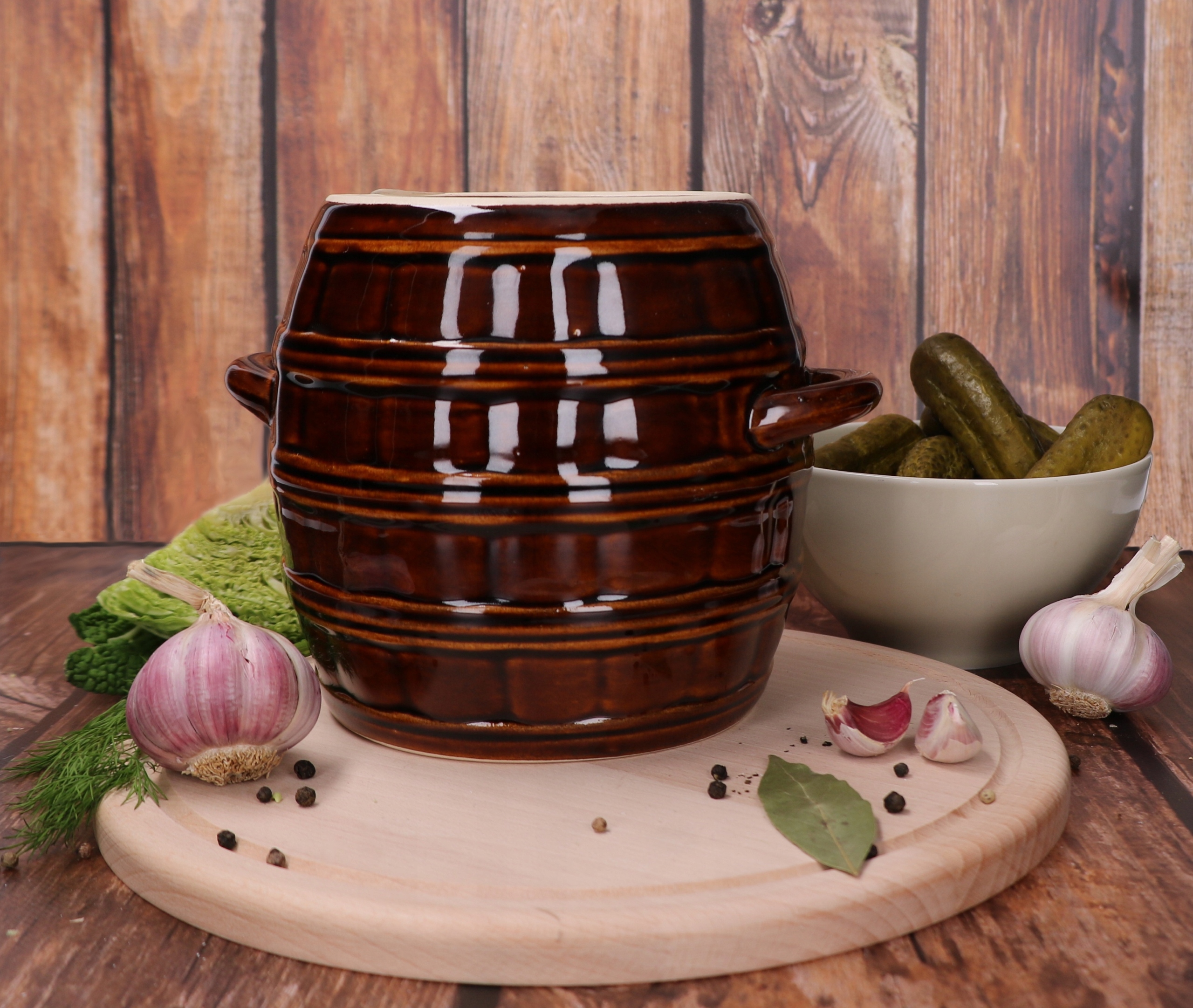 Кастрюля керамическая, бочка для маринования, сало, огурцы - 2,5л