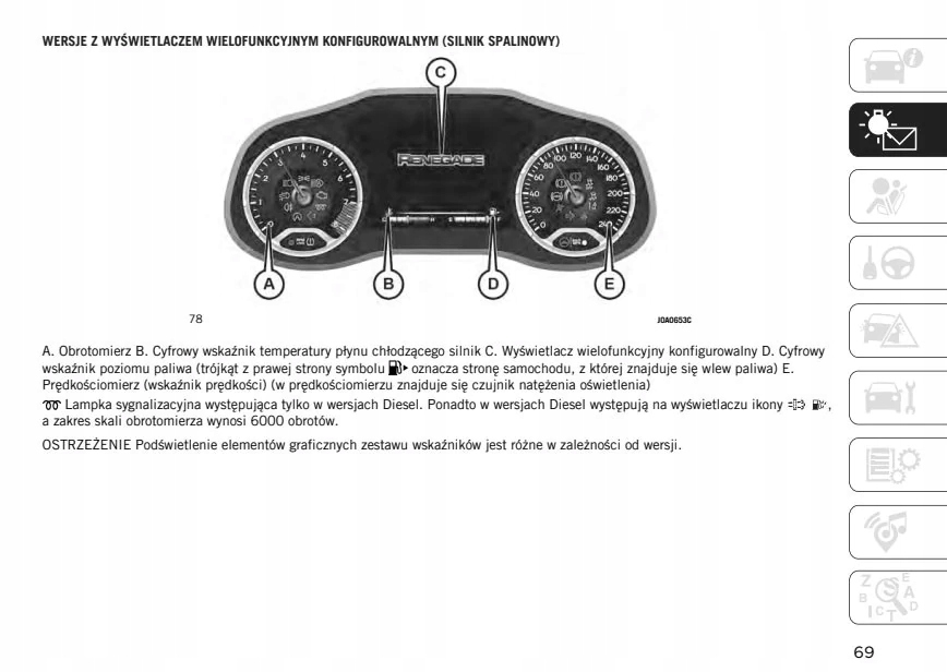 Руководство по эксплуатации Jeep содержит все версии оборудования и полезную информацию о том, как эффективно и безопасно использовать автомобиль, например: - указатели поворота, контрольные лампы, открывание и закрывание - освещение и обзорность, сиденья, отсеки для хранения вещей, отопление, вентиляция, кондиционирование воздуха. - советы по вождению, эксплуатации, обслуживанию автомобиля - уровни жидкостей, проверка и доливка, аварийные операции, замена колес, предохранителей, замена лампочек - технические данные... и многое другое, дающее путешественникам ощущение безопасности и комфорта. Польское законодательство обязывает продавца приложить к автомобилю руководство по эксплуатации на польском языке. Руководство пользователя автомобиля новое, на польском языке.