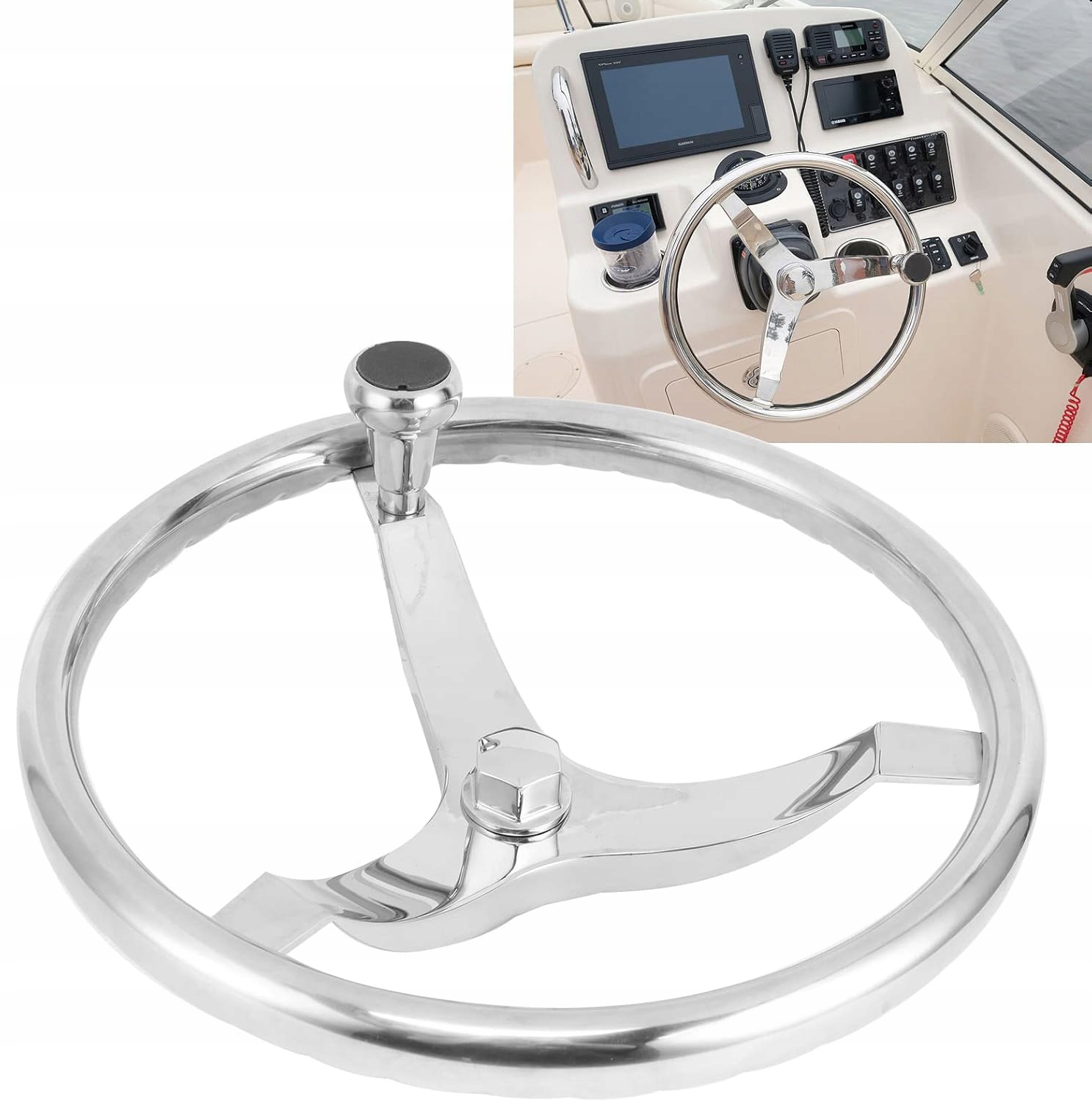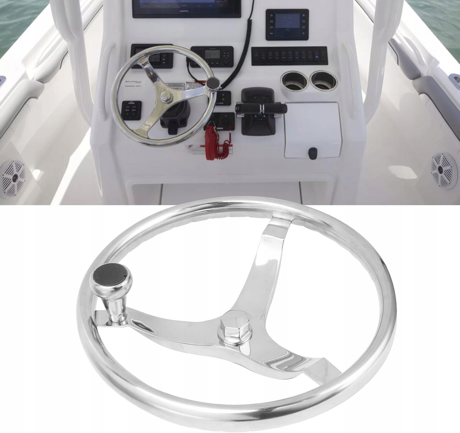 【Материалы премиум-класса】: руль яхты изготовлен из высококачественной нержавеющей стали 316 с глянцевой поверхностью, прочной и устойчивой к суровым морским условиям. Привлекательный дизайн с тремя рычагами и кнопками.