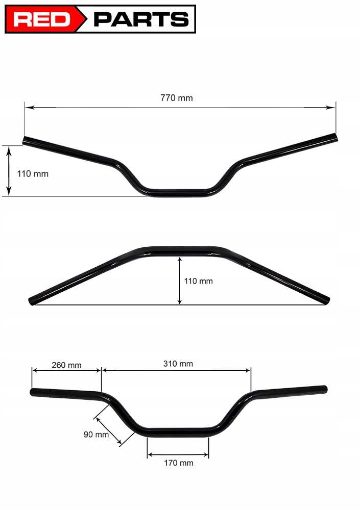Руль не имеет фрез посередине, поэтому его можно устанавливать на мотоциклы с разным расстоянием между креплениями. Максимальное расстояние между креплениями — 13 см (максимальное расстояние между внешними краями креплений). Рычаг + арматура на руле может иметь общую длину максимум 23 см (расстояние от края руля до начала первого поворота).