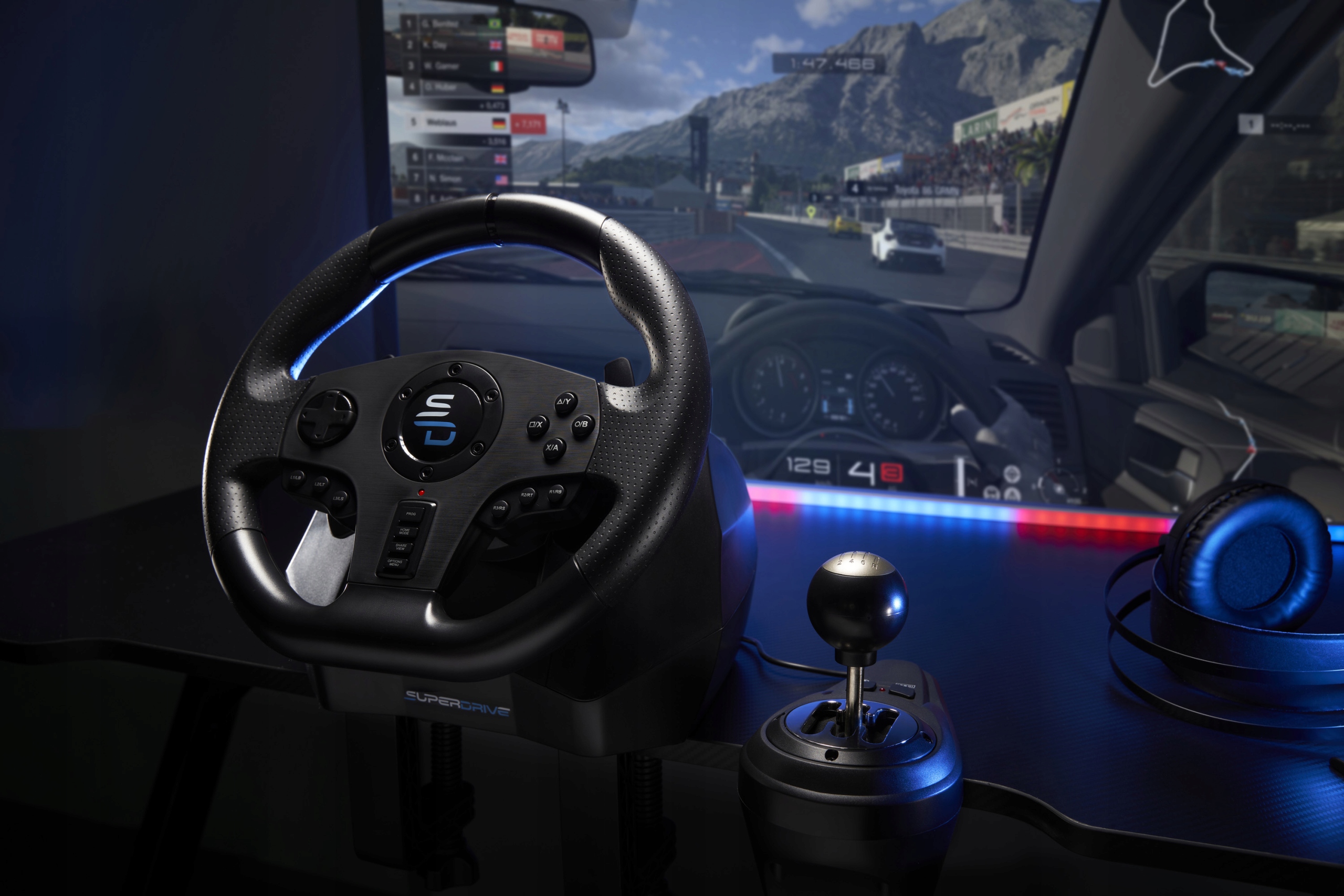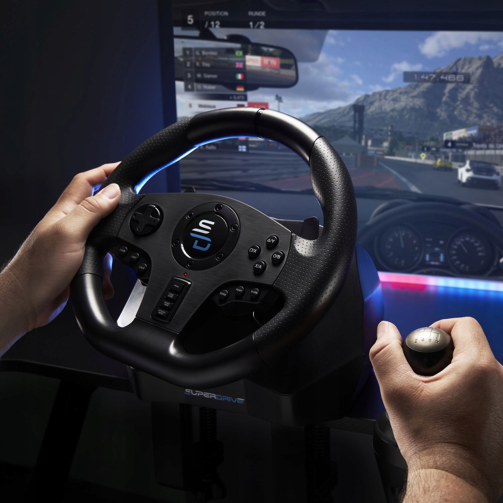 Компактное гоночное рулевое колесо GS 850-X было разработано, чтобы обеспечить максимальное удовольствие от виртуальных автогонок и повысить реалистичность игры. Набор позволяет в полной мере ощутить гонку, которая зачастую сопровождается адреналином победы и кайфом от чрезмерной скорости.