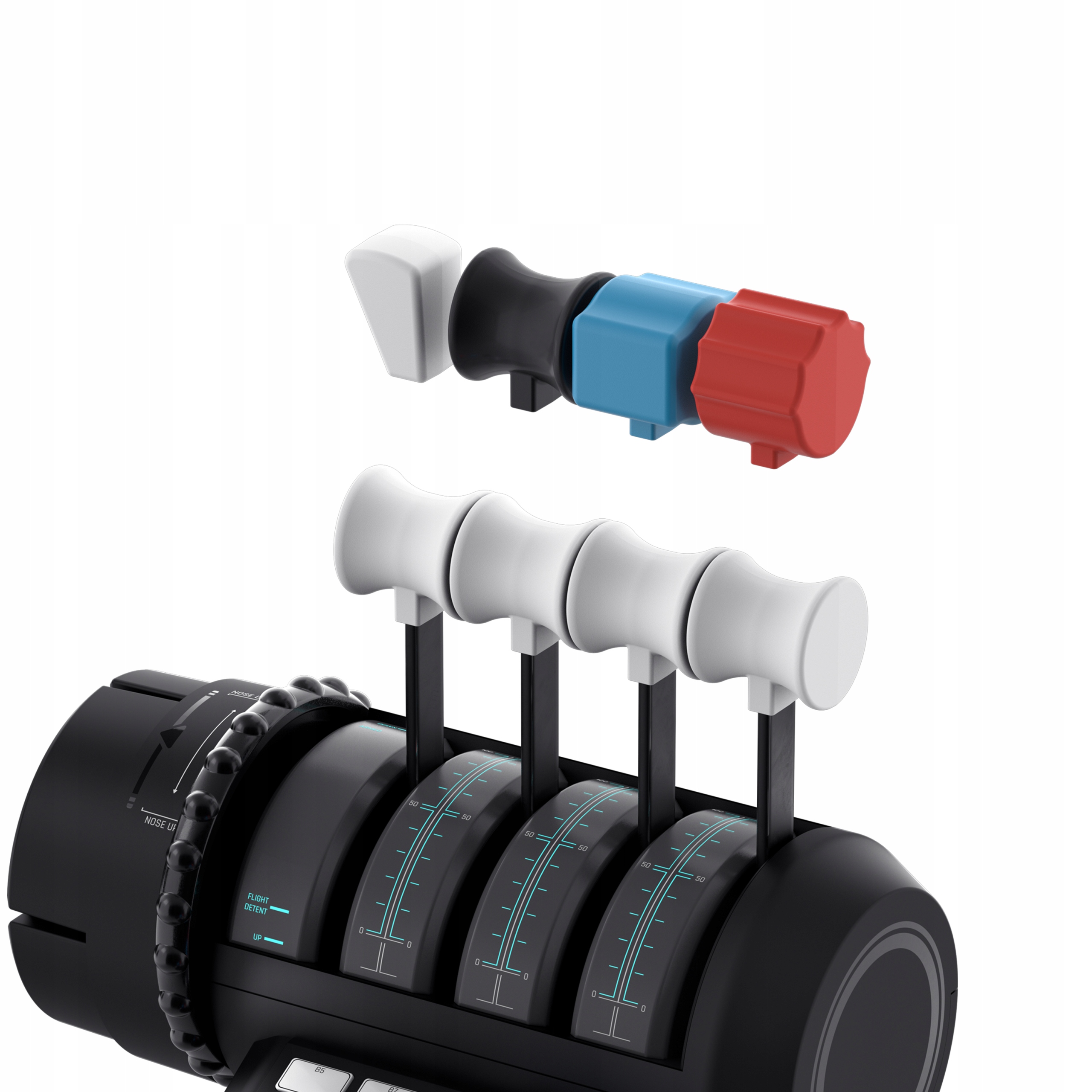 Двойные рычаги с точным управлением, 10 программируемых кнопок и встроенное триммерное колесо обеспечивают реалистичное управление легкими и тяжелыми самолетами. Рычаги можно адаптировать к выбранной модели полета благодаря сменным рукояткам.