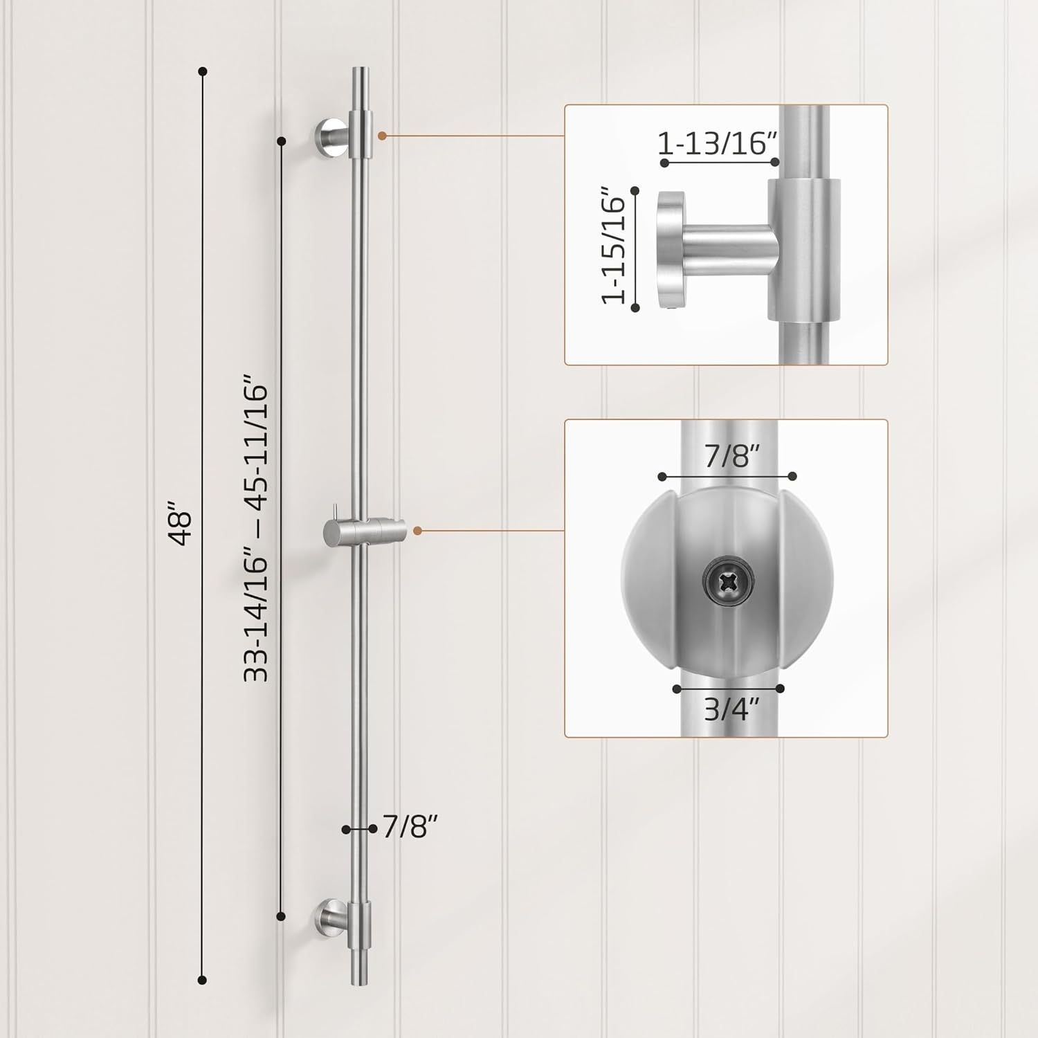 Demplever Rail с регулируемой ручкой на головке для душа, рельс для душа 18/8 из нержавеющей стали 122 см, матовая отделка, установленная на стене, F209S122-BS