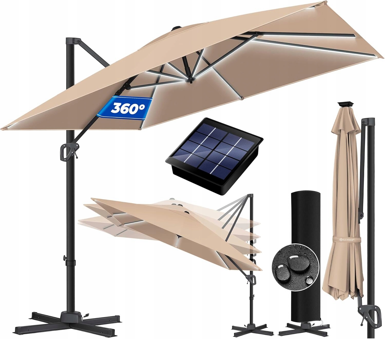 Просматривая «Kesser зонтик бежевый 300 х 300 см со светодиодным освещением», вы можете быть уверены, что данный товар из каталога «Садовые зонтики» будет доставлен из Польши и проверен на целостность. В цене товара, указанной на сайте, учтена доставка из Польши. Внимание!!! Товары для Евросоюза, согласно законодательству стран Евросоюза, могут отличаться упаковкой или наполнением.