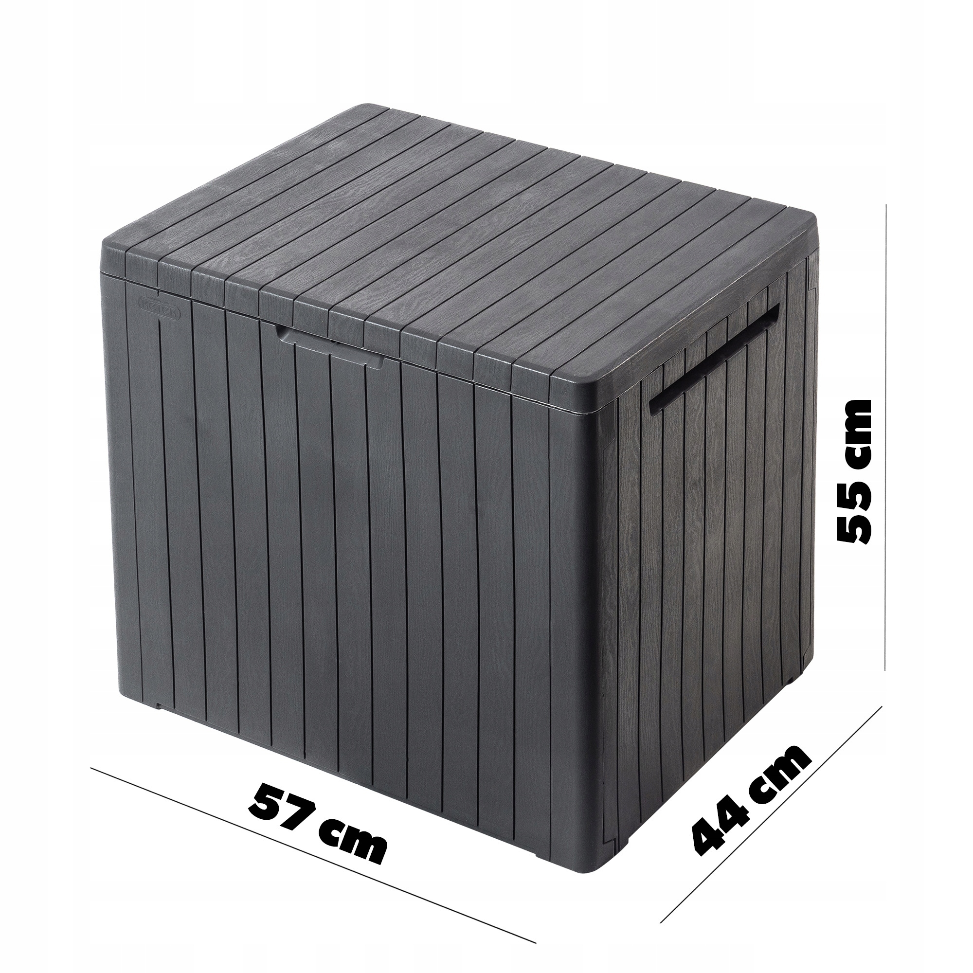 City Storage Box - это универсальное место для хранения для хранения любых аксессуаров и сада или инструментов для мастерской, а также домашних повседневных предметов. Благодаря сундуку, все в вашей спальне, ванной комнате, гараже и саду заказано и легко найти. Функциональное, практическое решение как дома, так и снаружи. Вам нужно скрыть различные безделушки, но в гостиной нет места для дополнительного предмета мебели? Нет проблем - вы можете хранить городскую коробку для хранения на балконе, не опасаясь низких температур или ультрафиолетового излучения. Оптимальный размер и емкость. Очень простой и быстрая сборка и простота поддержания чистоты.