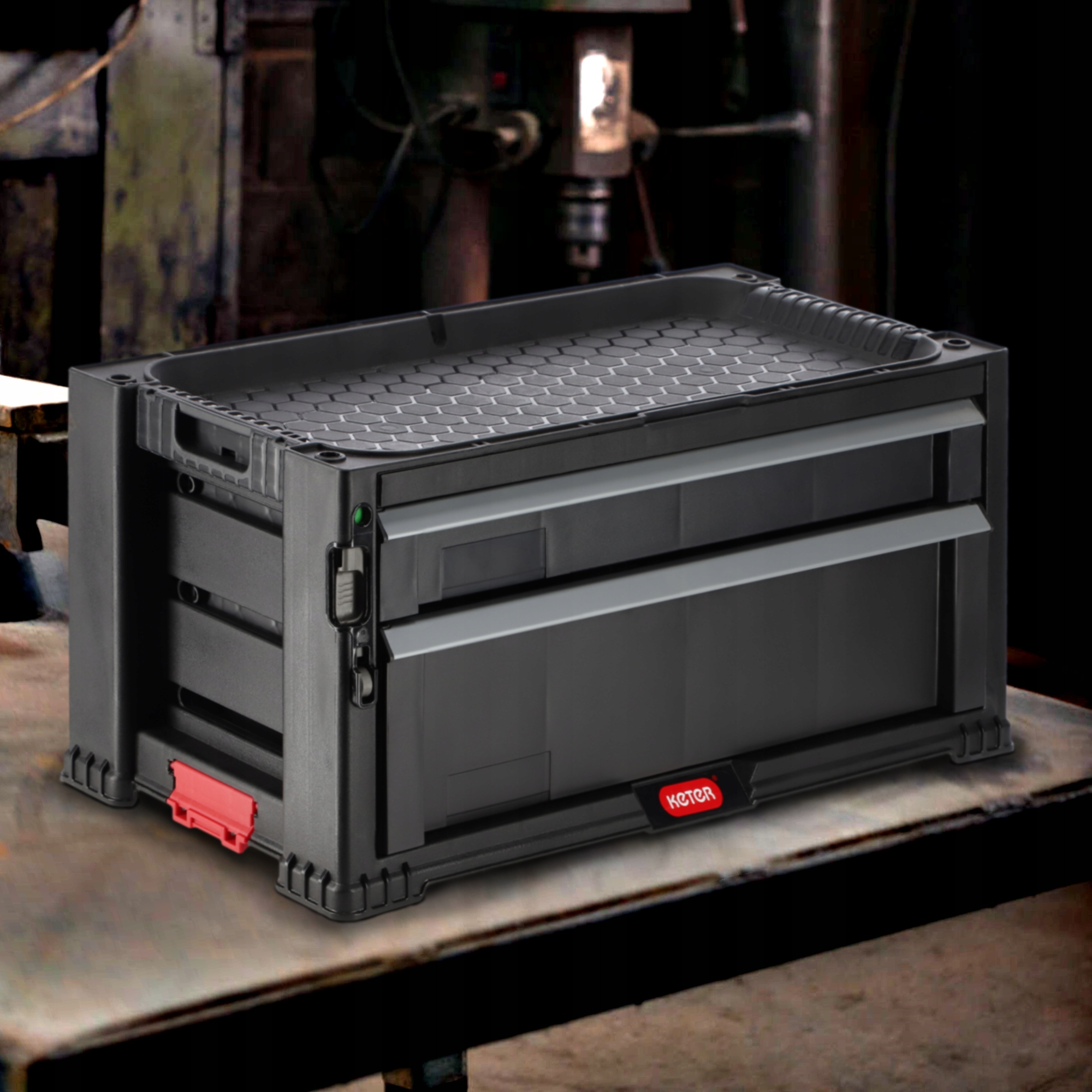 Наш инструмент Шкаф изготовлен из прочного и устойчивого к повреждениям материала, поэтому мобильная полка прослужит вам долгие годы. Все статические и подвижные элементы прочно соединены, благодаря чему выдвижные ящики работают плавно, а шкаф перемещается без проблем.