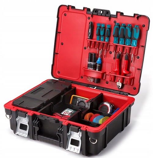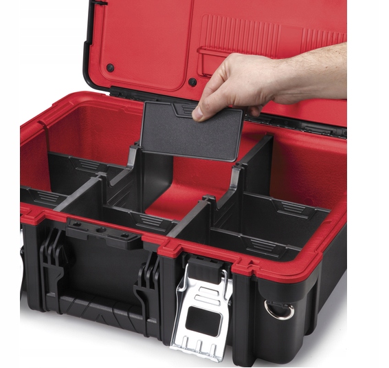Внутри коробки находится съемный органайзер с 4 отделениями, обеспечивающий легкий доступ к инструментам.