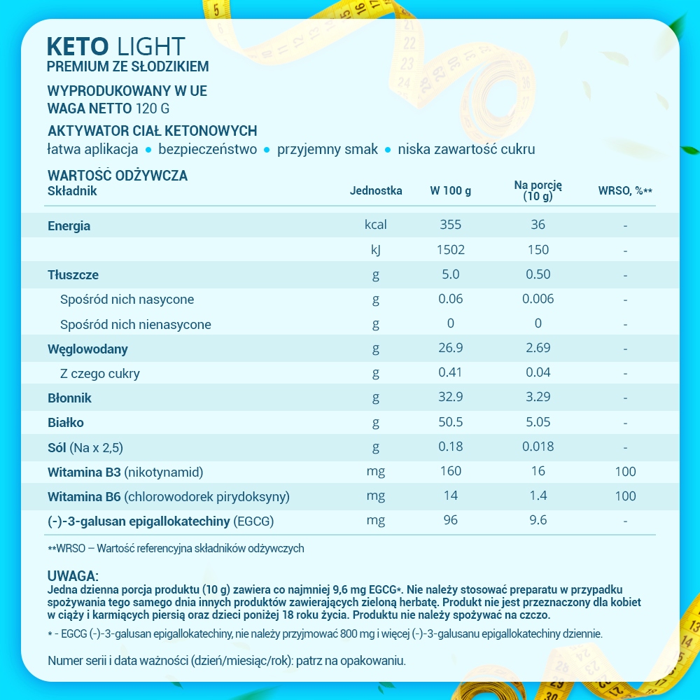 Keto Light Premium - Добавка дієтична, натуральна, Вітамін B3, 120 г