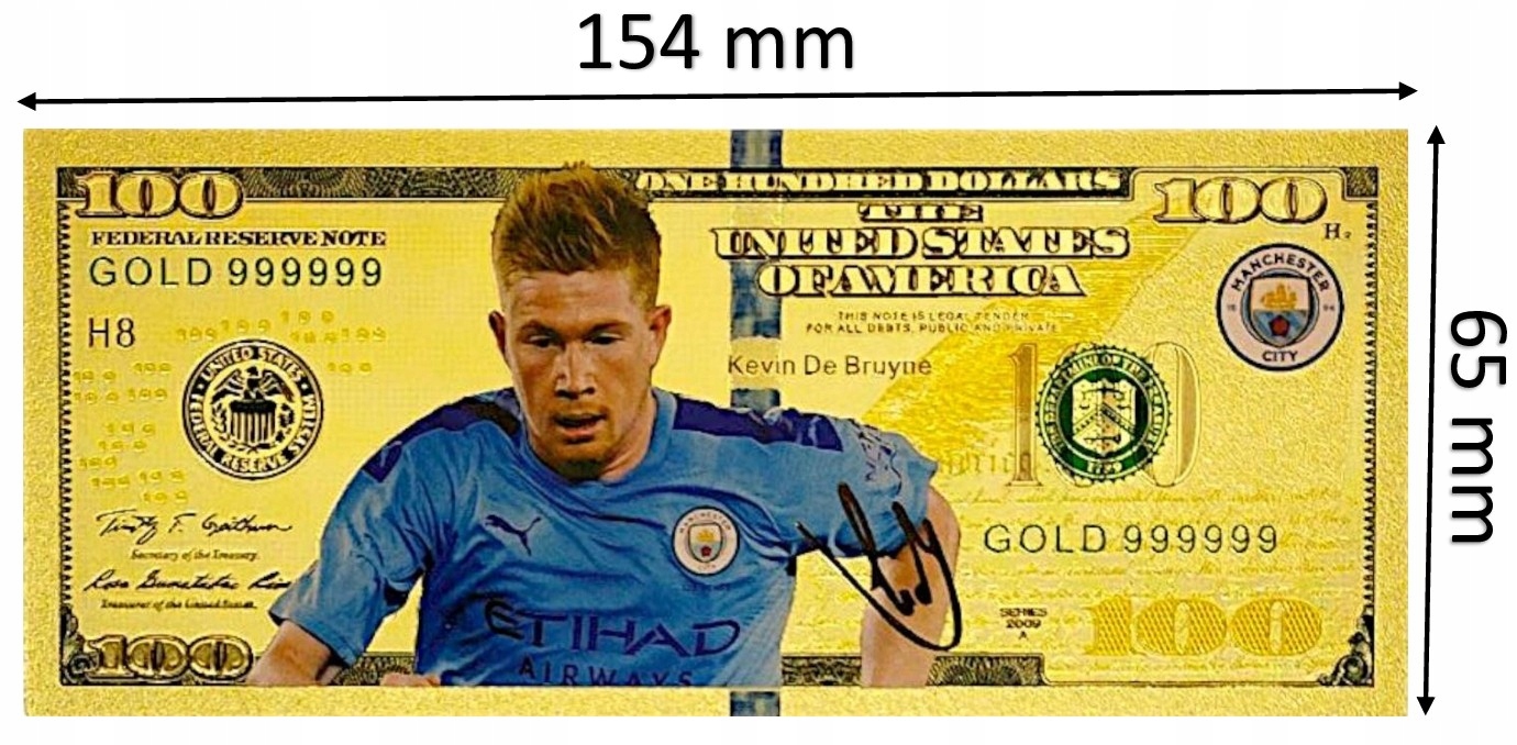 уважайте мастерство одного из лучших полузащитников в мировой-Кевине де Брюйн-спасибо в эту эксклюзивную, золотую реплику с золотой банкнотой 24 карата. h2> - идеальный выбор для фанатов Манчестер Сити, любителей футбола и спортивных коллекционеров.